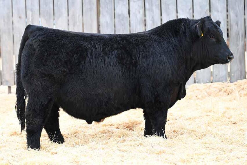Long, stout, dark, hairy muscled up and heavy, this is the kind of bull we have high confidence in making big time, high dollar consistent cattle.