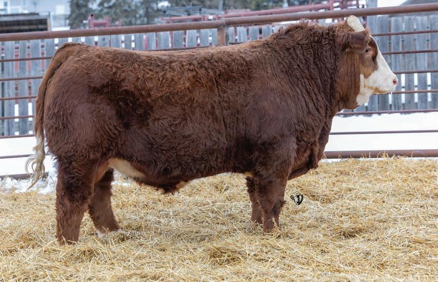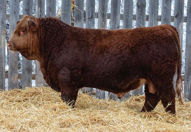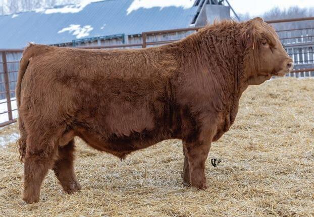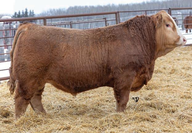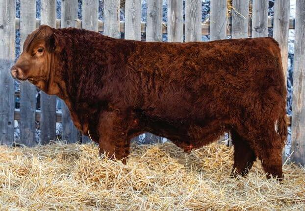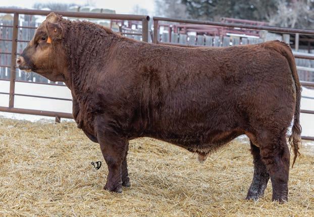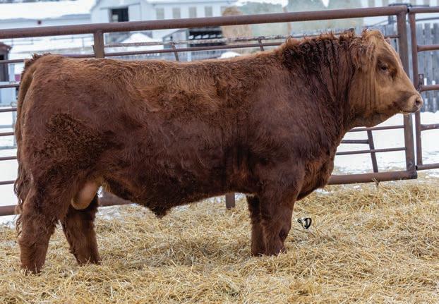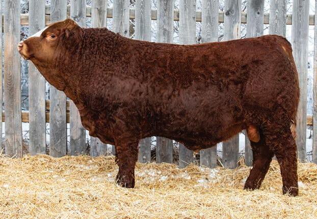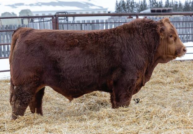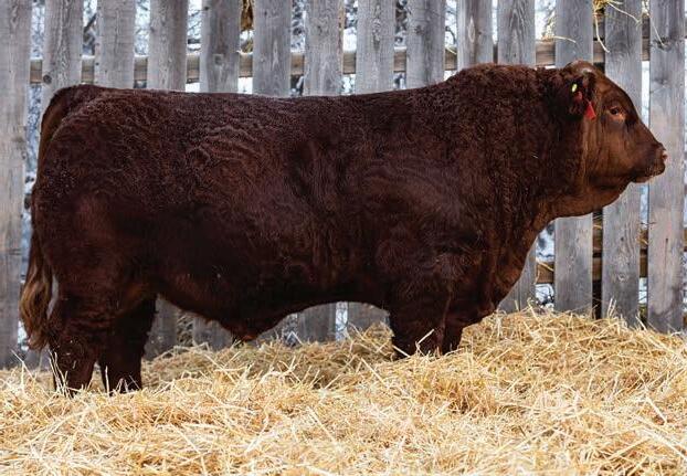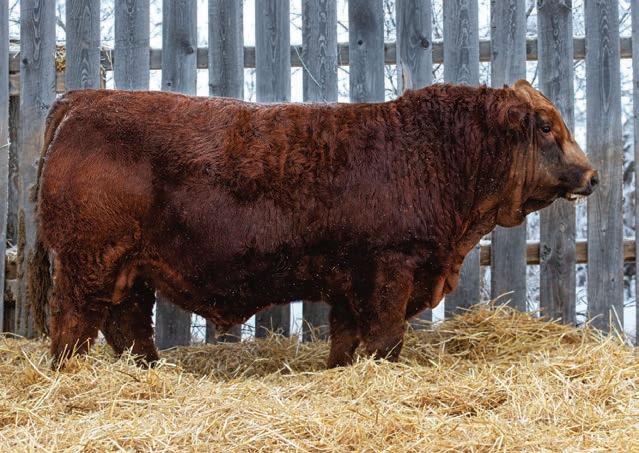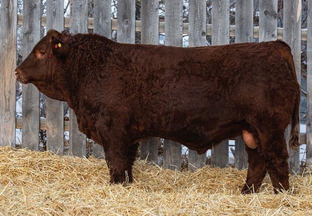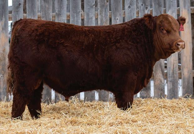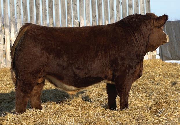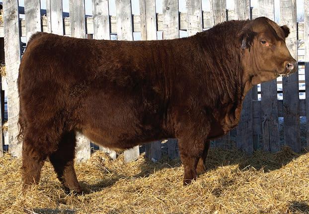 An interesting bull here, an embryo that is a full sib to Vigilante owned by Black Gold and Little Willow Creek and the Shook bull that Maxwell and Double RN bought as high sellers. A full sib heifer sold this fall at Border City to Andrea Capjack. This bull is changing and getting better daily as his recip dam was only milking on two quarters. He is hairy, dark red and big testicled. The proof he’ll be good is backed by the full sibs I mentioned above. His donor dam is currently being flushed as she gets the job done year in year out.