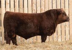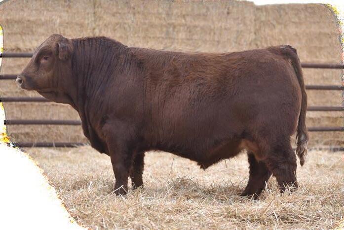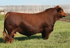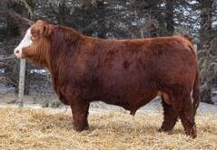 Nunchuck is a balanced type bull that is as dark red as they come. This guy was one of the standout calves last spring. He has levelled off a bit in his development but I believe will be an impressive individual as he matures. His mother if my favorite young red cow and his grandmother was one of our most consistent producers having raised 6 sons that sold through this sale.