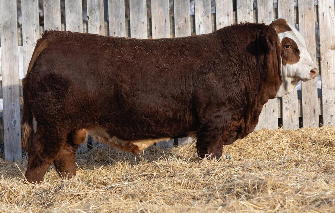 Depth and softness is what I’ve got written beside this guy. Look to this guy to add performance to his calf crop. He grabs your attention when you’re in the pen and his calves are sure to grab the attention of the order buyer at the auction mart next fall.