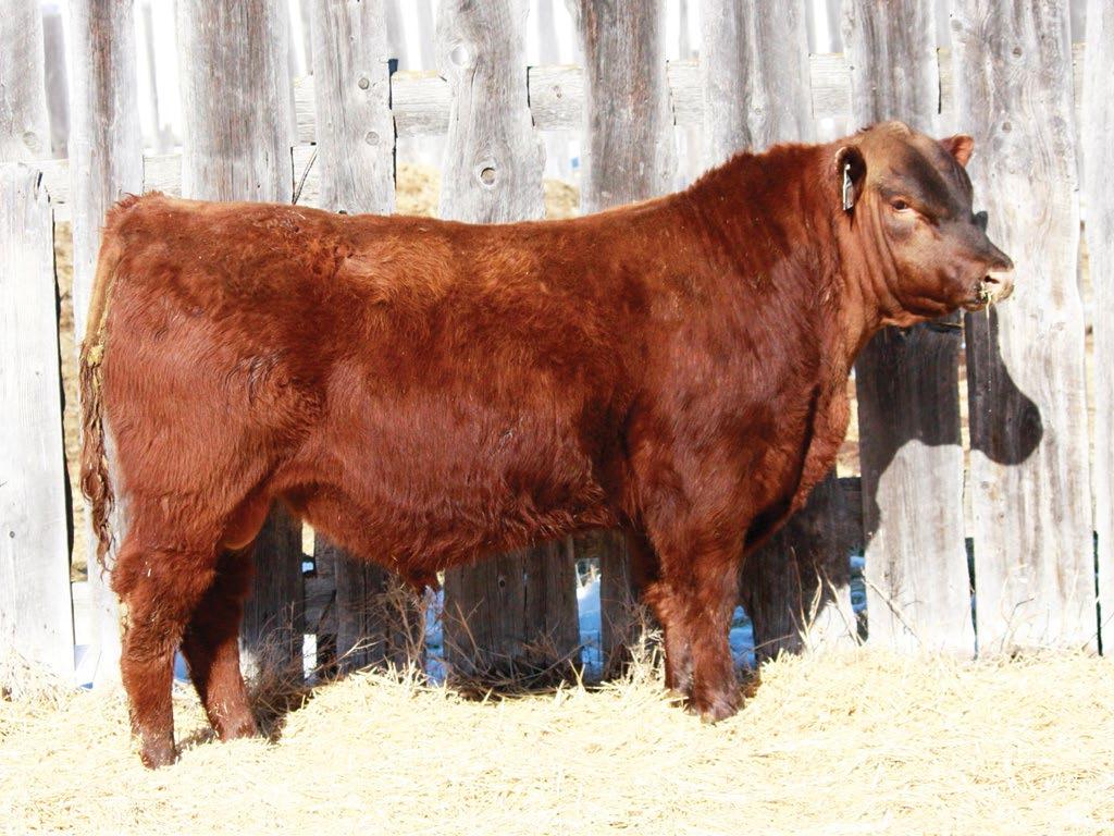 A good, long, eye appealing bull that will work on well developed heifers or cows. Old “Slewfoot” has done everything we expected of him as a sire. His flush sisters are producers and his first daughters calving this spring are top shelf. Good bull here.