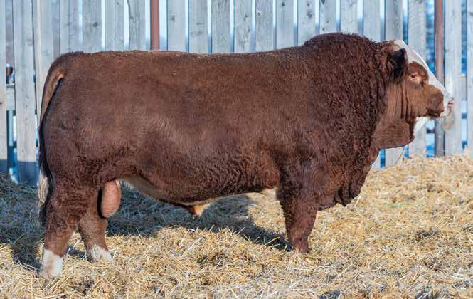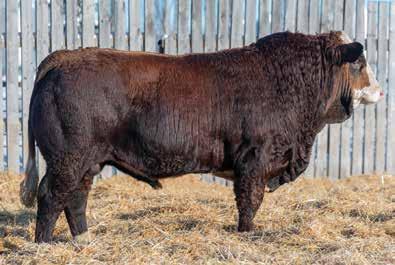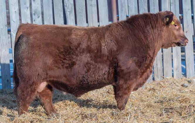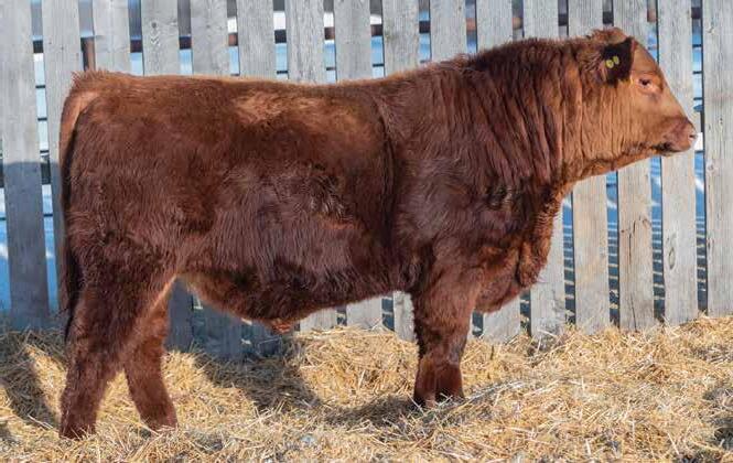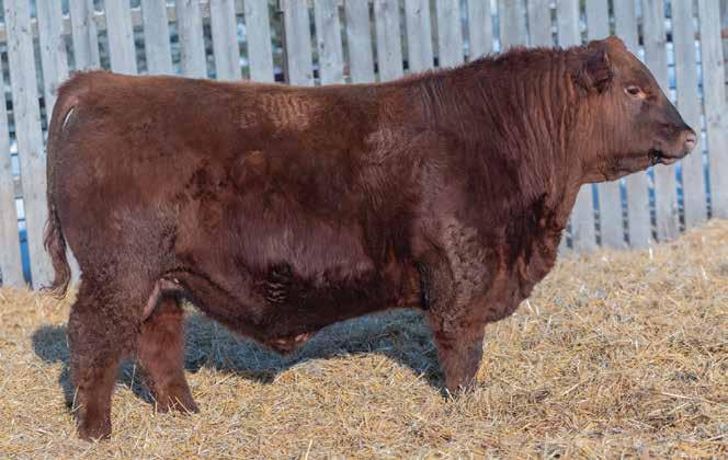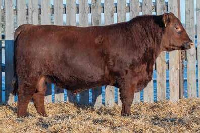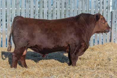 He’s a light birthweight bull but not a heifer bull. His maternal line has plenty of power with Flex and Damage in the pedigree. He is our 2nd heaviest 2yr old Red Angus at 2044 lbs. Sure to get some amazing steers out of him. A cow bull here. Parent Verified.