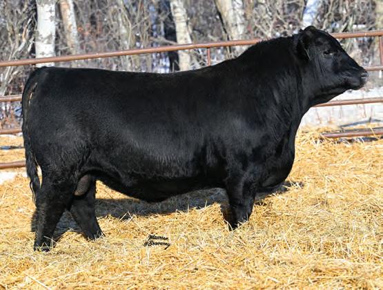 This Ignition bull’s pedigree is stacked with some of the most popular Angus genetics like Renovation, the Isabel Y69 female, Density, Free Wheeler, Final Answer, and BC Lookout. The dam, Blackbird Scarlet, is very feminine and level uddered with small teat size and great production. She stems back to the same cow family that produced Soo Line Prophecy.