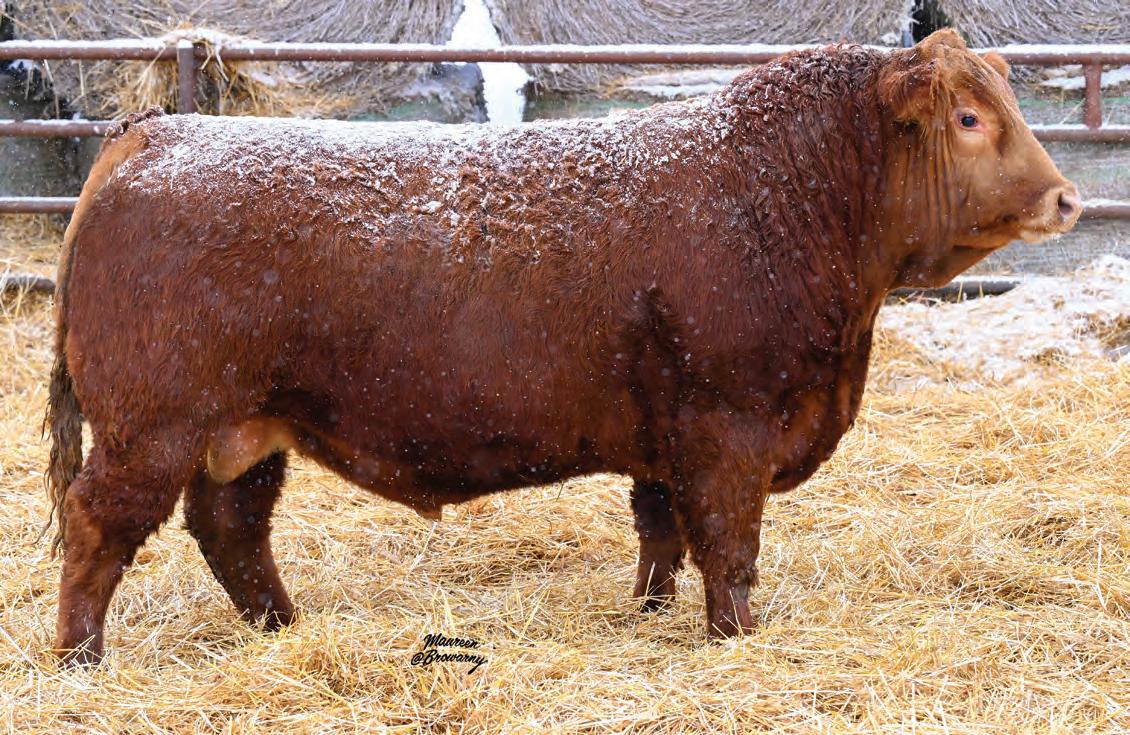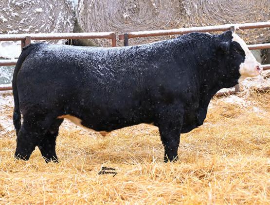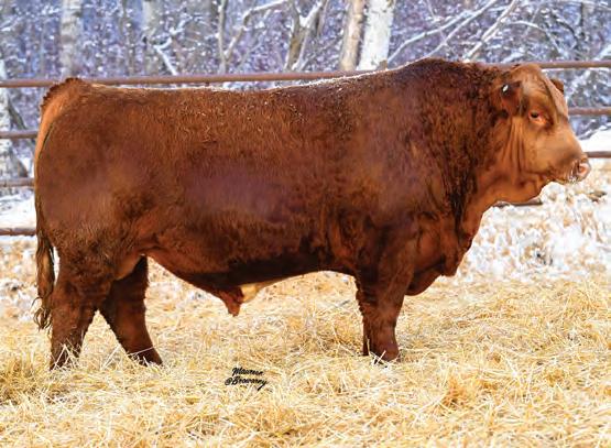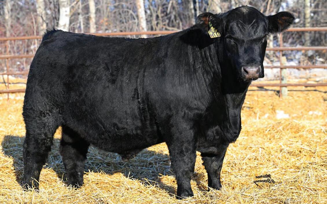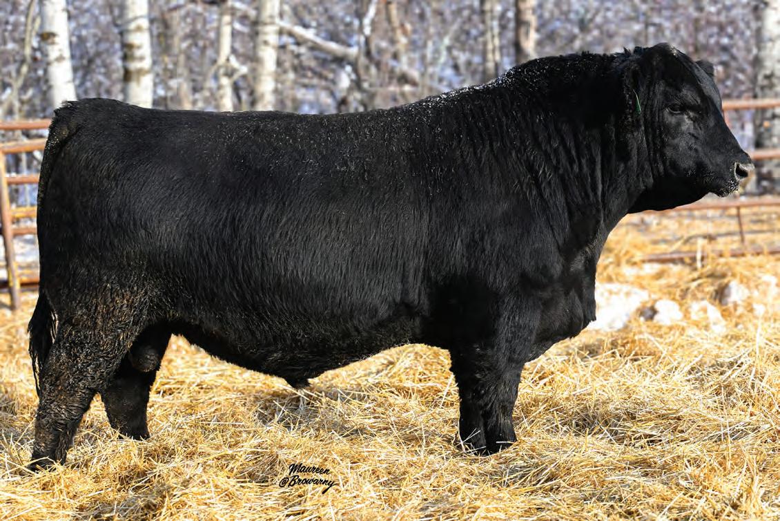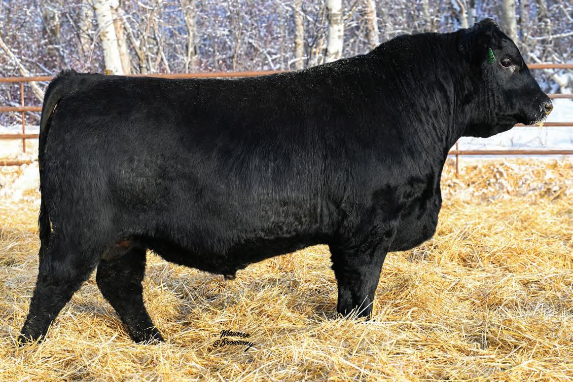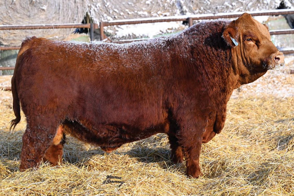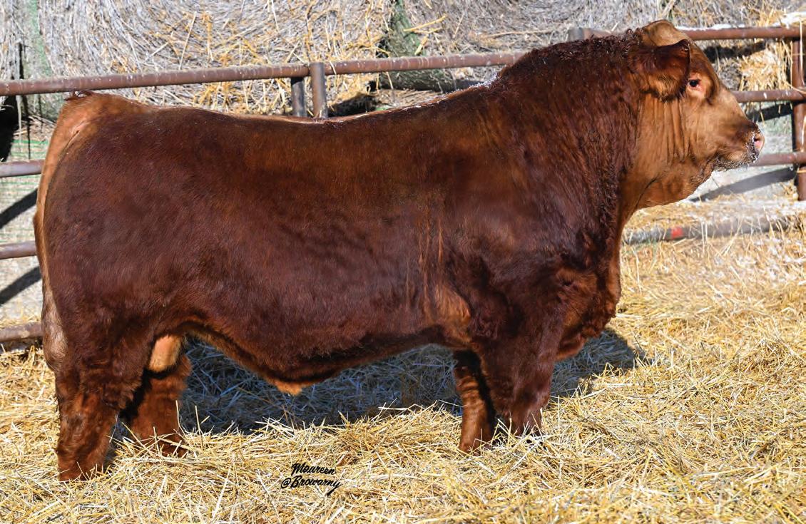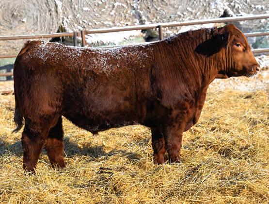 Pen favourite by visitors! Performance headliner and genetic masterpiece with unparalleled depth of rib and herd bull character. We purchased his dam from good friends at J Square S. The Ruth Cow family has done extremely well for