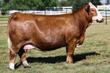 KK JARR Missy 491M is one of the most unique and impressive Next Level daughters we have come across and she continues to be a cow that stops visitors in their tracks. She is exceptionally long-fronted, angular and elegant, yet still bold in her rib shape, big-hipped, and equipped with the mass and dimension required of elite modern Simmental females. Missy ties together femininity and power in a way that very few cows can and she does it with flawless structure and a blaze face that only enhances her presence. Her ability to combine look, balance, and softness makes her an ideal ET donor that we expect to have a long and influential career ahead of her.Mated here to the $240,000 WF Capital 164L whose proving to sire stout featured cattle with loads of look and presence and added hair as well as the truly exciting up and coming red stud, MRL Cool Hand Luke whose semen has been in high demand and early calf reports have been extremely encouraging.