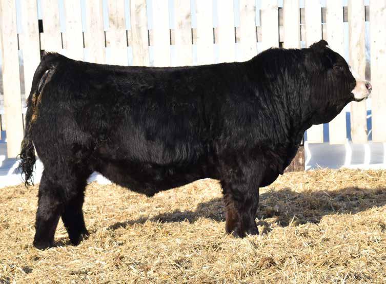 I decided to bring back some older but very proven genetics mating Kop Crosby to arguably my most perfectly constructed black cow on the ranch and it sure clicked. KFJ 3N is a powerful bull. He’s long spined, stout in his hip and heavy boned with a big square foot. He was the heavy weight at weaning which comes as no surprise as this cow family is what my black program is built around. His grand-dam is none other then my cornerstone black donor that has over 15 daughters and granddaughters in the herd. 3N’s pedigree is stacked with breed legends from both sides of the border with the likes of Kop Bengie 6P, TSN 55W, Crosby, Loaded Up, Riddler and Black Edition. 3N’s steer calves are sure to fetch top dollar from the front row but I think his females will be his greatest accomplishment.