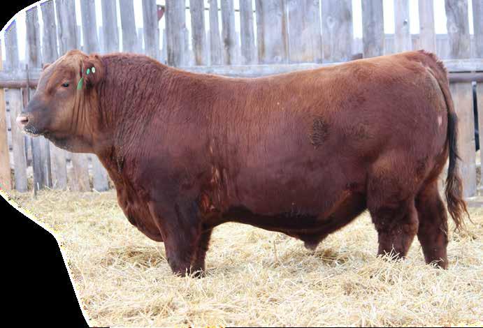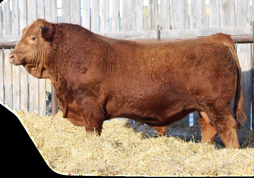Powerhouse Big Energy son here out of one of our most productive cow families. 4486B has 12 registered progeny and has raised top bulls to some of our best repeat customers over the years. Sons going to Twisted T Cattle Co., Brigden Farms and 2 sons to Sanguin Ranch. The Big Energy bull himself is a rip and his progeny in both the red and black bulls are downright impressive. A Big Energy son was the high selling bull at U2Q bull sale last spring. Interested to see who finds this outcross red herdbull.One here with serious herdbull potential. MRL retaining 1/3 semen interest