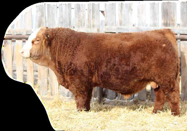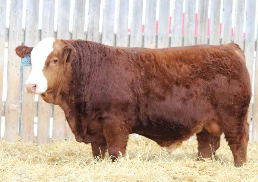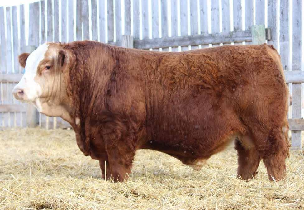 Yet another stout blaze face Tangle Flags son out of a cow that can flat out raise herdbulls. 4 back to back headliner herdbulls in 2021, the $23,000 MRL Legend bull to Downey Farms, 2022 MRL Hat Trick to Berts NR Simmentals, 2023 another headliner to Sonny Berndt, ND, and 2024 a loyalty son to Sjostrand Farms as well as 4 black ET sons to Jade Ulmer, ND, Charles Allan, SK, Glencoe Stock Farms, SK, and Kory Jorgenson, ND. As usual, a headliner again in 2025 with a moderate bw and stout, stout made. Homo polled.