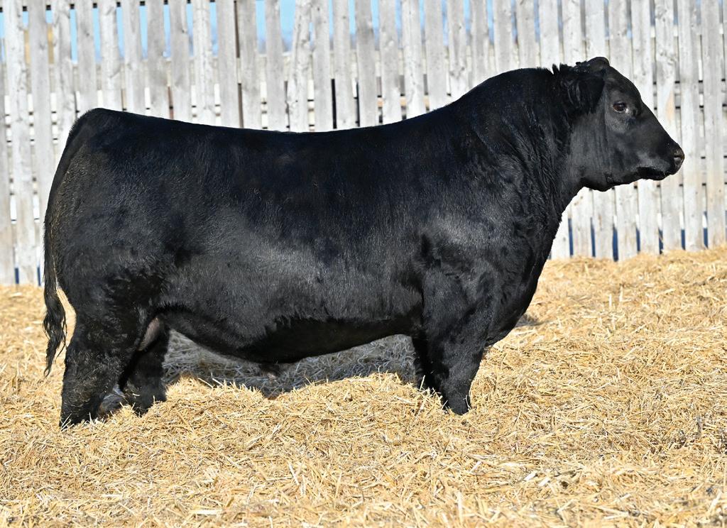 Moderate framed bull from the outstanding cow family that produced the $1.4 million LT Marquee. Big muscle shape on what you can only describe as a traditional angus design and build.