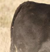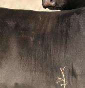 In 2024 we were in search of herd bulls, Royal Blood was a bull that really stuck out to us in the Duralta bull pen. A er seeing his high producing dam Rosebud Queen171F we knew he had the genetics to replicate. He’s sired by Bar-E-L Royal Mint a descendant of our cow herd, and son of our donor female Evening Tinge 38C. e decision was an easy one and he has not disappointed with this rst group of sons. You’ll nd his calves to be big, stretchy, long spined bulls with extra hair.