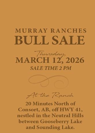 March 12, 2026, at Murray Ranches, Consort, AB 9:00am MST.............................Viewing and Co ee 12:30pm.............................Lunch 2:00pm.............................Sale