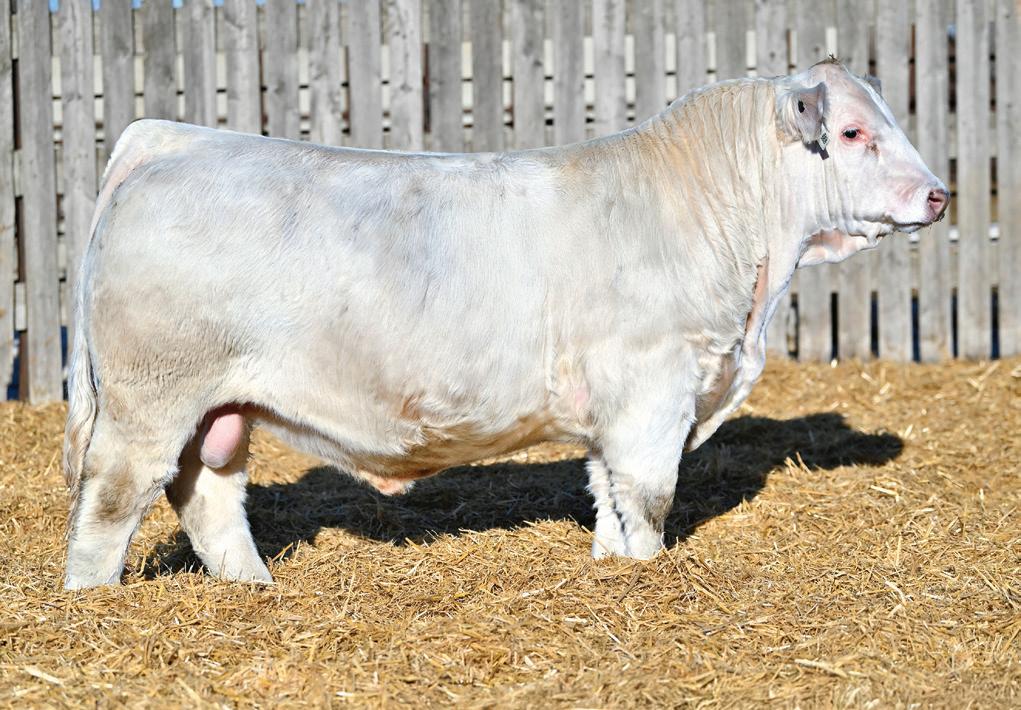 We were fortunate to purchase several very good herd sires, in the spring of 2024. Royal Blood was a bull we found at Duralta Farms, that has everything we were looking for and has not disappointed in his rst calf crop. Cora 134J is great uddered young female that has been a super producer in her short career, and her maternal brothers have been highlights of past Murray and Bar-E-L bull sales. 63N is physical statement of a bull. He is absolutely massive ribbed, big haired, good footed and has a killer look. At 901lbs at 205 days, he de nitely has the growth to produce calves that pound down the scales.