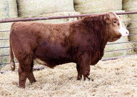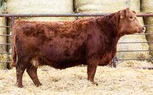 Smooth shoulders and attractive small skull on this free striding red blaze face bull. Would work well on a group of second/third calvers with his 83 lb BW. TLR 185J is a red bald face cow with a real nice udder.