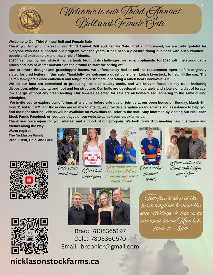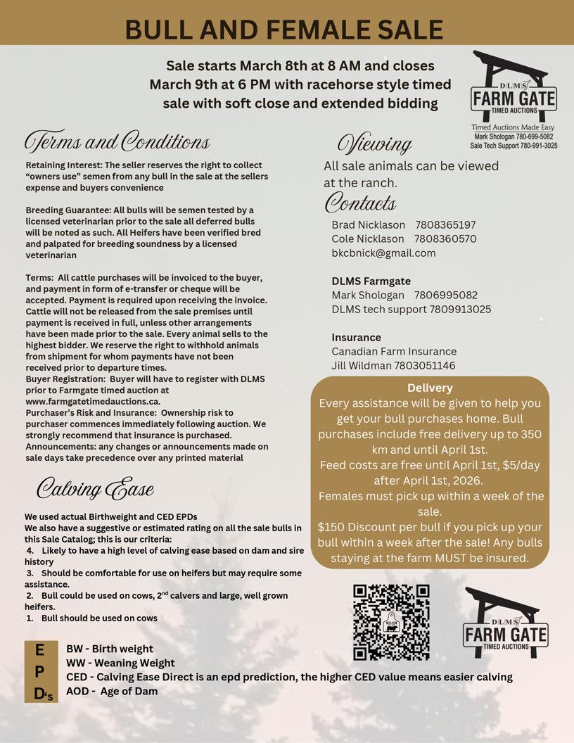 Nicklason Stock Farms Two Year Old Bull & Heifer Sale 2026 - DLMS Farmgate Timed Auction