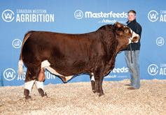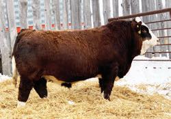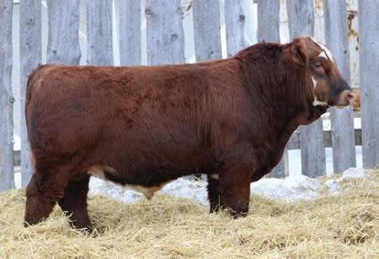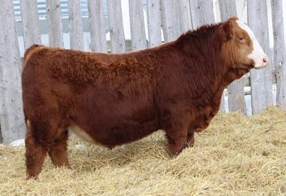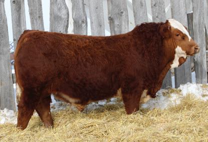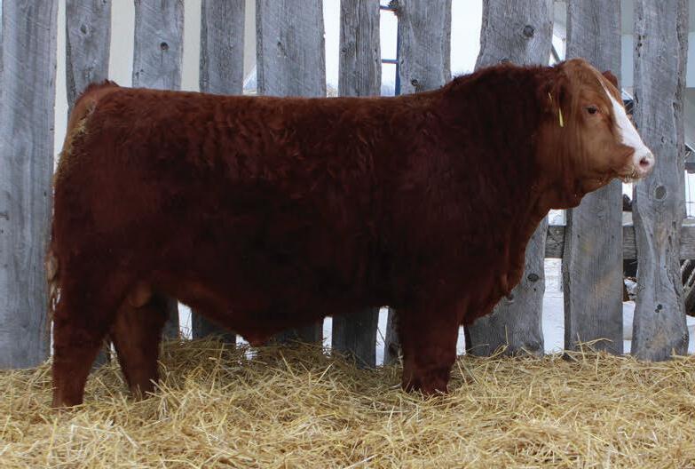 A half Fleckvieh son of BEE Phanton. He is thick made, deep quartered and has some white on his face. His dam is a nice moderate cow with a good udder. She has two top end females in our herd and also has females working for Lone Stone Simmentals and Floyd Loewen. She also has sons that sold to Blaine Ottmar, Tyler Slawinsk, Evan & Carmel Rubenuik and Ken Miller. Want a son from a proven cow, look up 67M!