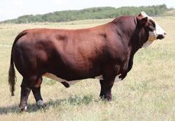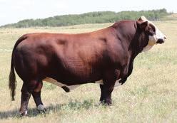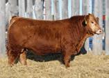 A dark red Ohtahni son that packages well with the other ones. He has a nice small head, good quarter on him and is very well balanced. His dam is a nice moderate cow with a good udder. She raised our high selling bull last year that went to Grassy Flat Ranch. She also has progeny working for Coulee Crossing, Warren Edmundson, C&E Stephens Farms and Big Hills Simmentals.
