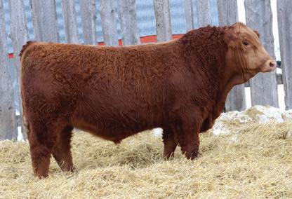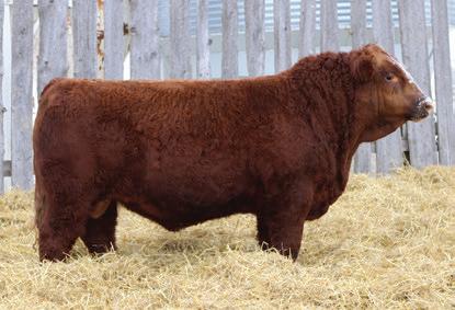 Here is a long bodied, attractive made red bull out of a cow purchased from the Stewart Cattle Company Dispersal. His dam is a power type female - long bodied, big framed and a true bull maker. He is sound in his make and free moving. If you’re looking to add length and frame size, 111M is your bull.