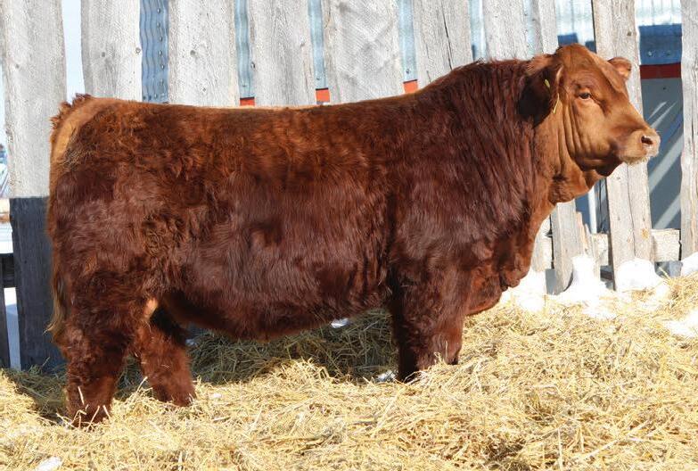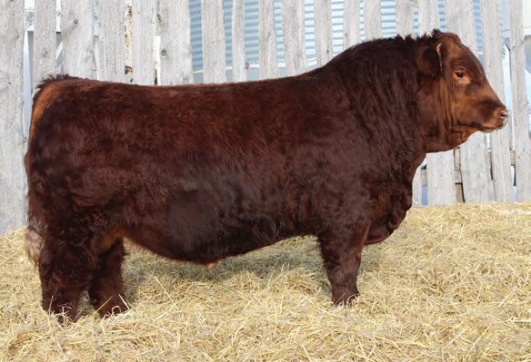 The powerhouse of the sale for sure! This Ohtahni son is as dark red as they come, has a good big foot, long body, good depth and thickness throughout. His dam is a powerhouse of a cow that we displayed as a pair at the first annual MSA Field Day, where we had lots of good comments from fellow breeders. If you are wanting to add pounds and size have a serious look at this guy!
