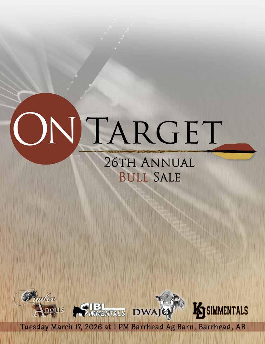 Welcome to the 26th Annual On Target Bull Sale. Last year’s sale was the best ever and with the cattle industry still exploding everywhere this year’s sale is a must attend. Dwajo Angus, Cinder Angus and SIBL Simmentals with KD Simmentals continue the tradition of servicing the area with top quality bulls for you, their customer. One thing that has never changed is the service the group provides for their customers; listening to what their needs are and making sure they are satisfied with the product.