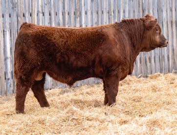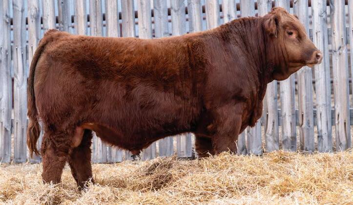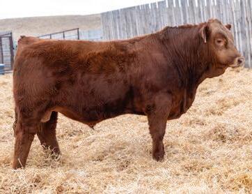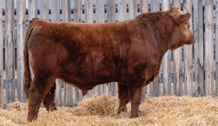 • This ½ Simmental ½ Red Angus bull is a stand out in the pen.