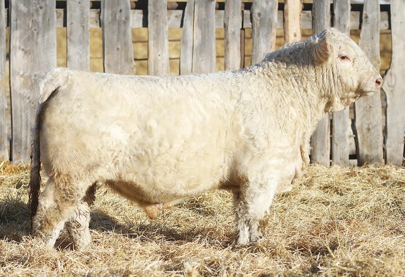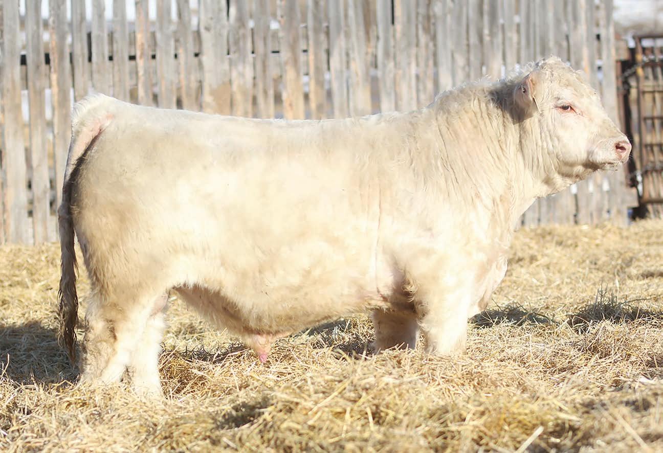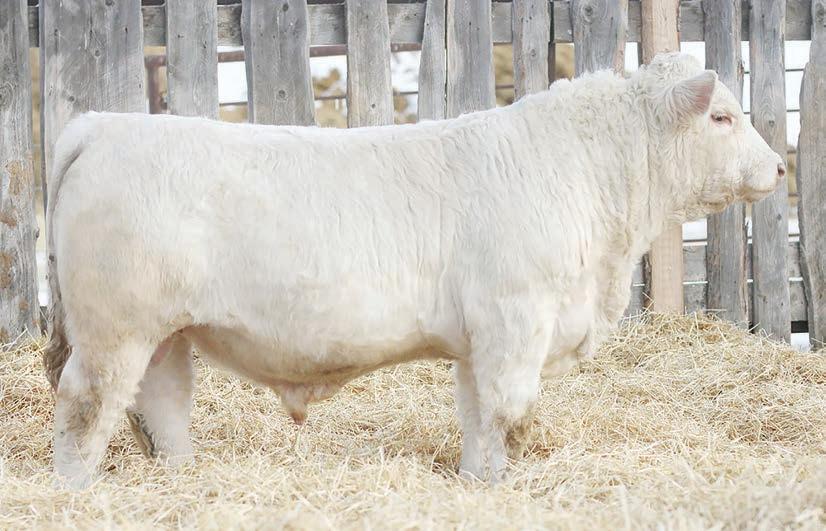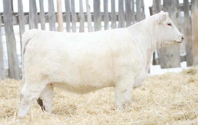 Prairie Valley Charolais high selling bull with a great EPD pro le , good look and big scrotal.