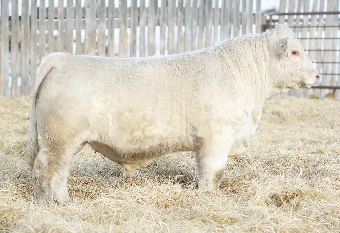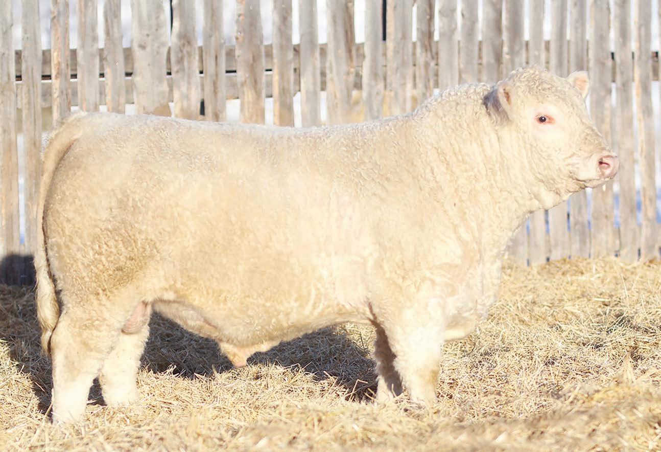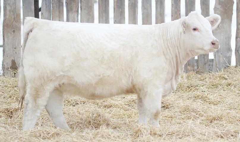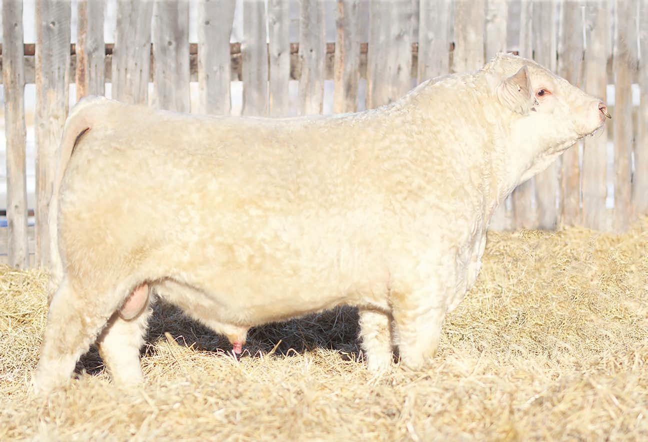 Prairie Valley Charolais high selling bull with a great EPD pro le , good look and big scrotal.