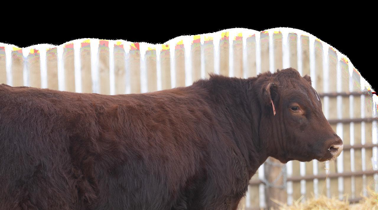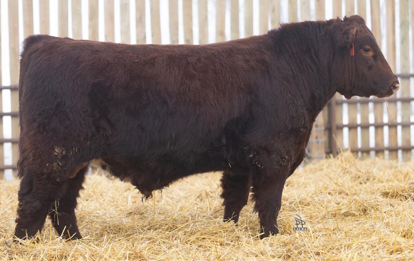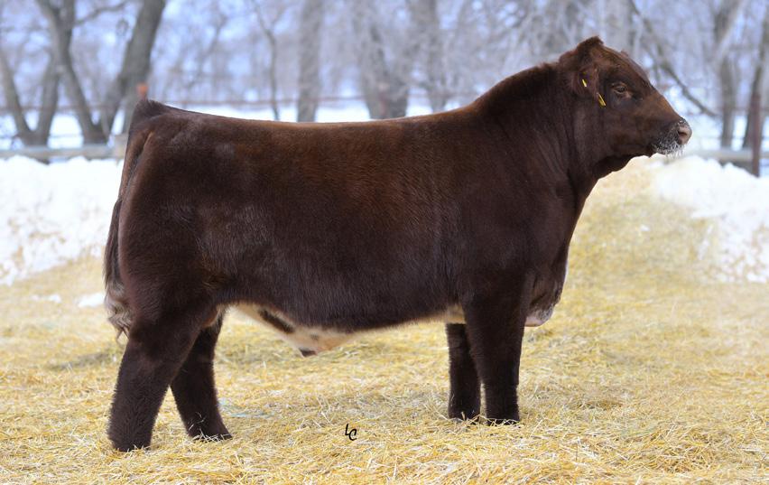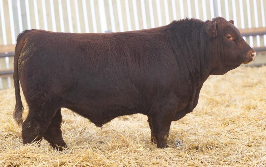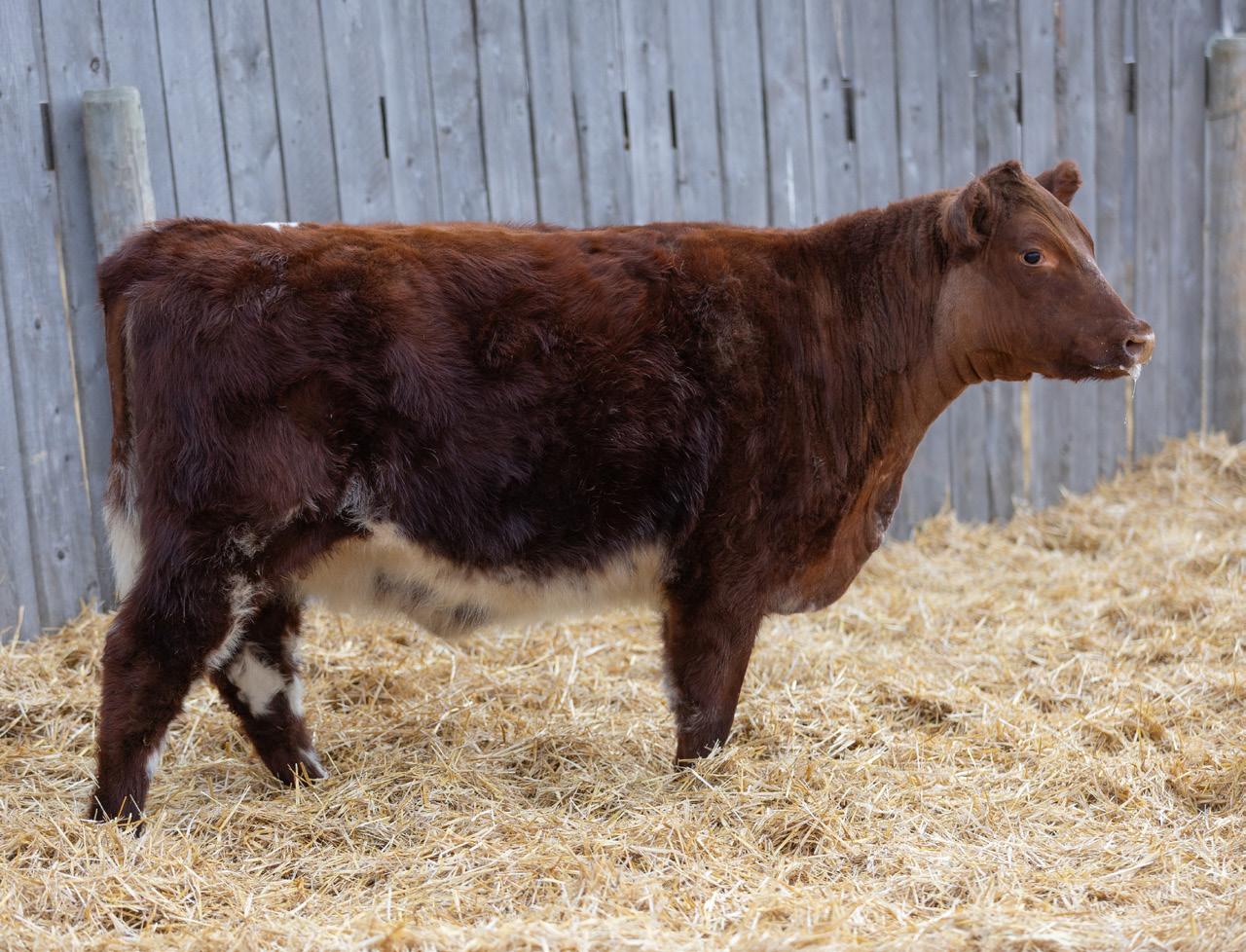 This dark red, heavy haired Great Guns bull is backed by strong maternal lineage. His dam is a 4-year-old roan Yesterday daughter that has a tremendous udder and stands on great feet and legs. For programs seeking to add dark cherry red colour, added extension and eye appeal, 6N checks all the boxes. We continue to be impressed with Great Guns for his consistency in siring deep bodied progeny with great hair coats, and a functional correct build.