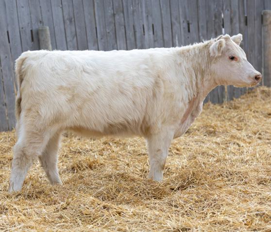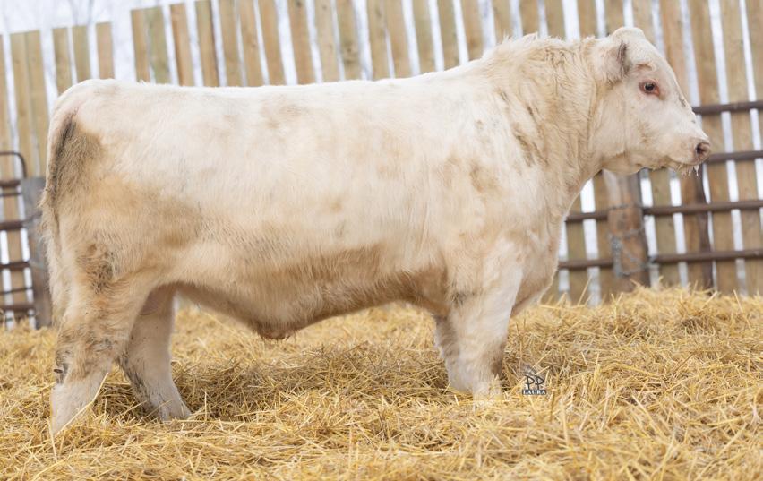 Third Select Sale, third time bringing another white bull to town – same quality as the last two High Sellers. In fact, KCC 2N is a half sib to KCC I AM LEGEND 1M, the Prairie Select 2025 High Seller purchased by Clearwater Farms Ltd. Kingsman is sired by none other than JSF Manhattan 194J. A bull that stamps his progeny with many similarities – wide foot, good leg structure, adequate bone, square hip, volume, excellent testicular development, and performance. His dam, Creekside Admiration keeps kicking out some good ones. Her 2024 calf, another Manhattan son, was selected out of our 2024 show string and is working for the good folks at Star P Farms, Humboldt SK. Her 2026 Great Guns heifer calf is destined for the replacement pen.