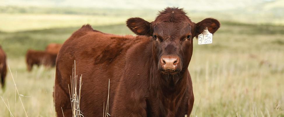 Misty Ridge Ranch has a top set of replacements on o er. One iron red angus heifers born in March/ April. ese females are sure to perform in any environment. Easy keeping, docile, high yielding, females have been the focus of Misty Ridge Ranch for years. Herd health consists of of Bovishield one shot, Meloxicam, and Ultrabac 7/som at branding, as well as Bovishield gold FP5 in February.