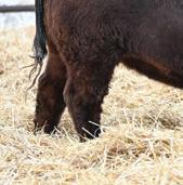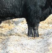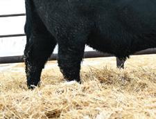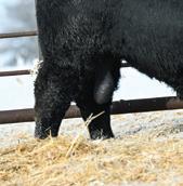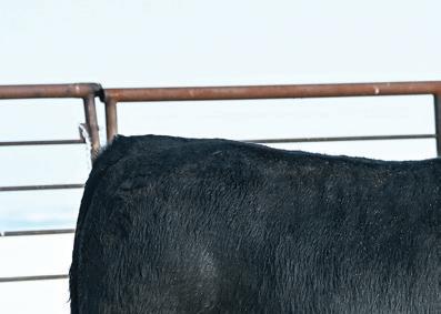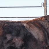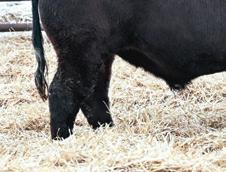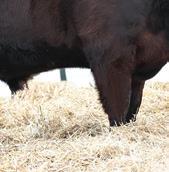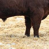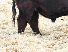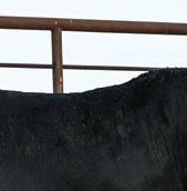 Mannville 809M’s dam always throws a bit of look into her calves. Interestingly enough, sometimes those cattle that tie a bit high in their front ends o en have a higher tail head to match. Her progeny don’t. ey have that style and cleanness in their front ends without sacri cing hip structure. Good footed calving ease option.