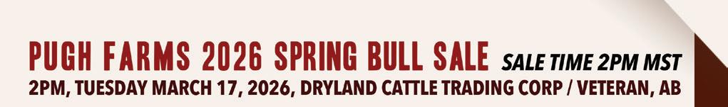 ank you for your interest in our 2026 edition of the Pugh Farms Spring Bull Sale. For anyone new to our program we thought we would provide a little background into who we are. We are a family-run, multi-generation operation based in Eastern Alberta where our operation runs along the Battle River. We have been in this area from the beginning of it being settled with the rst generation making a homestead claim in 1910. We take pride in raising both seedstock and commercial cattle designed to perform in real-world commercial conditions.