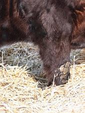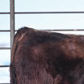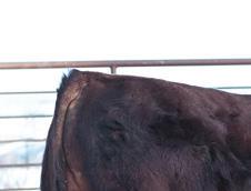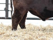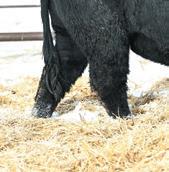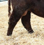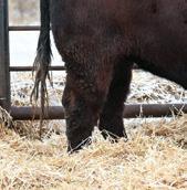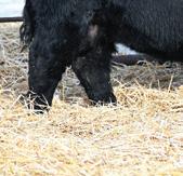 Momma’s Boy 287M is easy to spot in the pen. Not only for his deep dark rich color but also for a front end, shoulder, and skull set that catches you with his calving ease appeal. His mother is one of the most moderate, and hard-working females on the place with a dark colored hoof coupled with a very square and correct claw design.