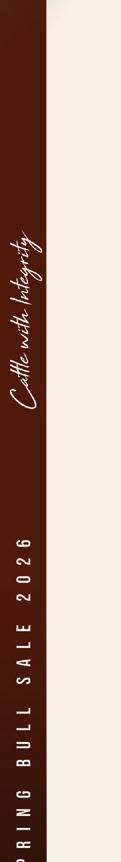 From a genetic development standpoint our goal is to consistently produce cattle that come easily at birth, get up and going quickly, and carry that momentum through rapid, e cient growth to weaning and beyond. We place strong emphasis on calving ease, fertility, sound structure, maternal strength, and longevity, while working to produce genetics that can ful ll their potential in performance and growth that drive pro tability. Bulls are developed with moderation and purpose — athletic, durable, and capable of covering heifers and cows in big country while holding condition — because functionality and longevity matter just as much as numbers on paper.