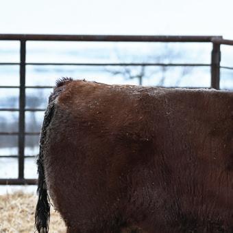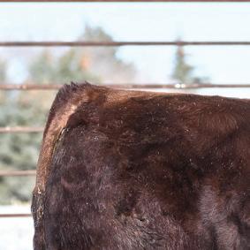 Much the same as the bulls in the catalog these females consist of a focused breeding program where e cient productivity is our focus. We have been diligent in our udder and structural selection criteria in both the females we o er as well as the bulls that we have bred to create them. e solid colors are 100% Angus and the black and red with white faces are F1 Hereford cross Angus. We have calved many of these females out over the years and really appreciate their productive nature. ese are all the top cut of commercial females born here in 2025 with none retained. Herd health on these females consists of Vista Once and Vision 8 Somnus at spring turn out. en they were given Vista Once and Vision 8 Somnus pre weaning and poured with Ivermectin at weaning. No Macrolide Antibiotics have been given. ey have been on a cereal silage/greenfeed and corn silage diet mixed TMR since weaning with a balanced mineral package.