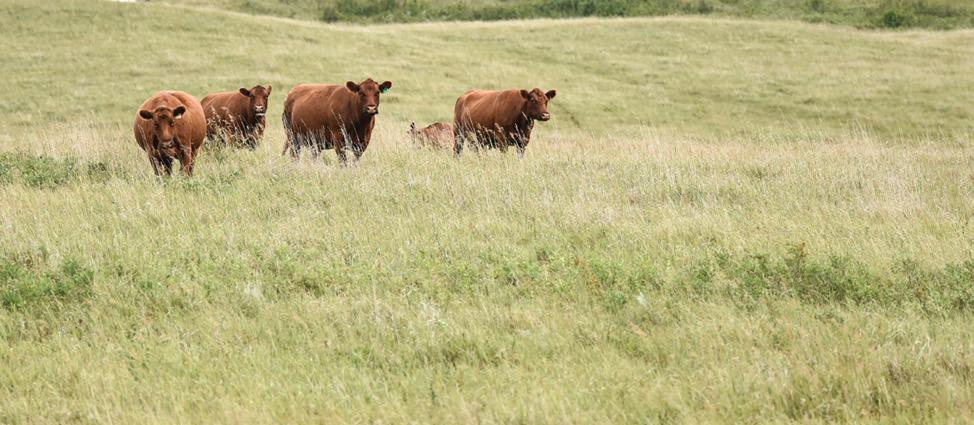 ese replacement heifers are born out on stockpiled grass in May/June and raised the way we like our cows; out grazing, on the move and doing it themselves. ey spend the summer beside their moms on pasture, then slide into a simple winter program consisting of a silage ration. e cows spend most of the winter grazing swaths, corn and bales. ey’ll raise strong calves and stay in the herd a long time. Herd health consists of Bovi-shield Gold fp and Ultra Choice 8 at branding with a booster at weaning.