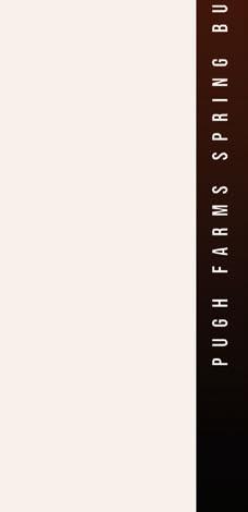 e bulls at Pugh Farms are raised with quality and longevity as the foundation of their breeding program. Proper nutrition doesn’t just start at weaning but starts in the cow at conception. Each year, a well-planned nutrition program is in place from conception to sale time. e targeted supplementation of organic minerals and vitamins throughout the year optimizes health and growth in the bulls for sale every year. From weaning on, the balance to challenge bull development without risking longevity is met with high-quality forage blends and a mixture of oats and barley. is is key for developing structure and not compromising fertility and soundness in breeding bulls.