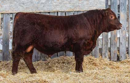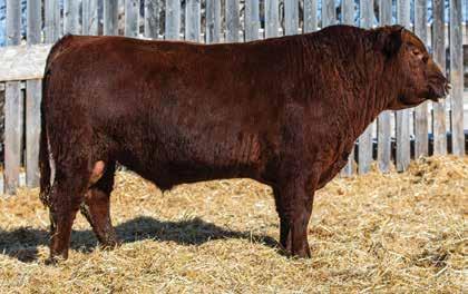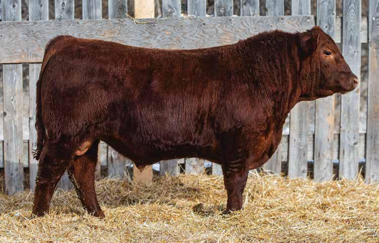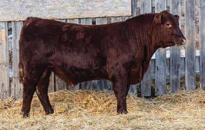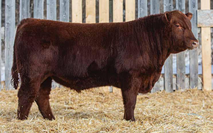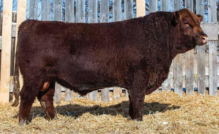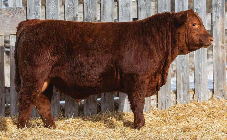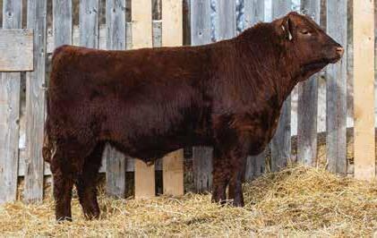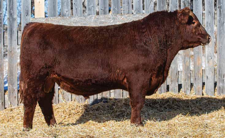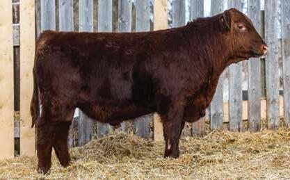 505M Is extremely long and smooth made. All in a dark red package. Dam averaged 68 lbs BW on six calves. Brother selling to Travis Peardon(‘25) and sisters selling to Harvey Vereshine(‘21&’22), Brad Osadczuk(23). Recommended for any heifers.