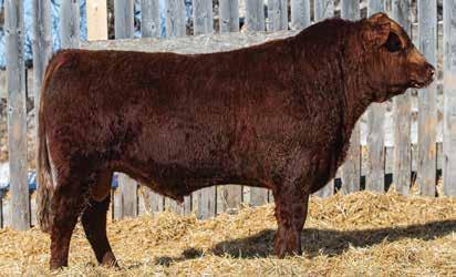 JCC 18M ia a dark red bull long body and smooth build. Good temperment with good feet. Would work on cows or larger framed heifers. Dam is a nice quiet cow with good dark feet and udder.