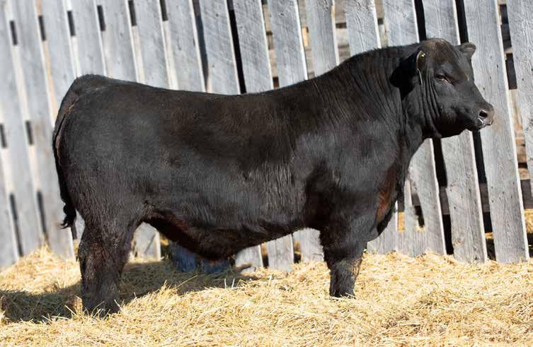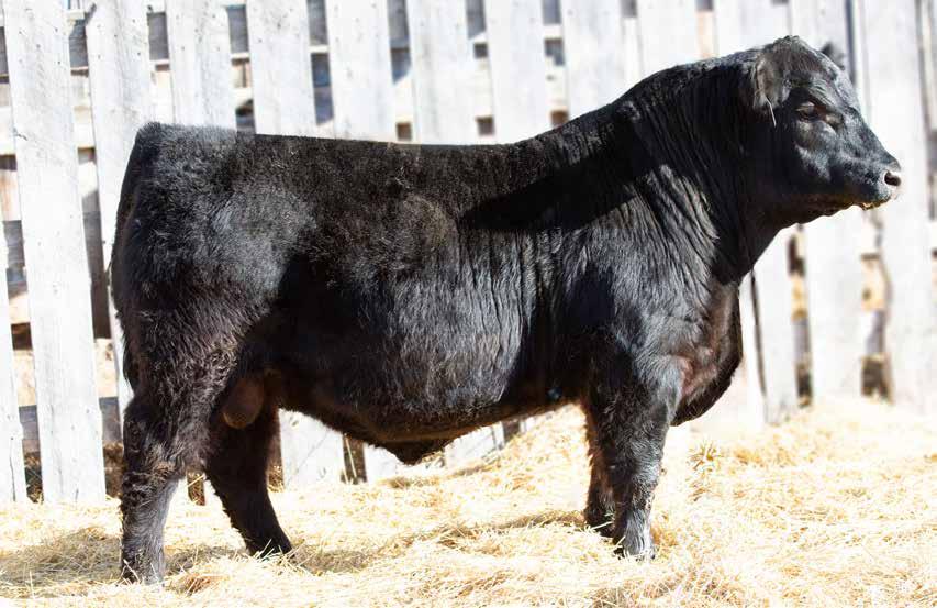 Lights out! This bull is the real deal with volume, capacity, muscle, hair and style. He is massive from the ground up with a true herd bull presence. He has an impressive weight gain, weaning off at 840lbs on September 1st.