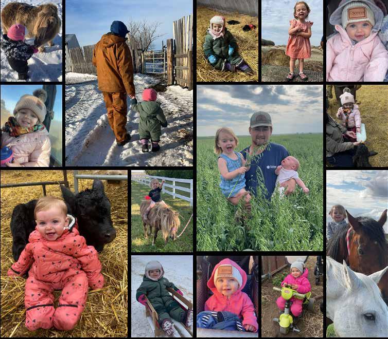 I would like to invite you to our 6th Annual Bull Sale held at our ranch in Waldeck, SK. Thanks to all our past, present and future customers for your support and confidence in our program. What an exciting time to be part of the cattle business. I truly love the cattle industry and the ability to raise my family in this lifestyle. We were very fortunate to welcome our second daughter Wrenley in May to the family. Both our daughters love the outdoors, doing chores, riding in the tractor and checking cows.