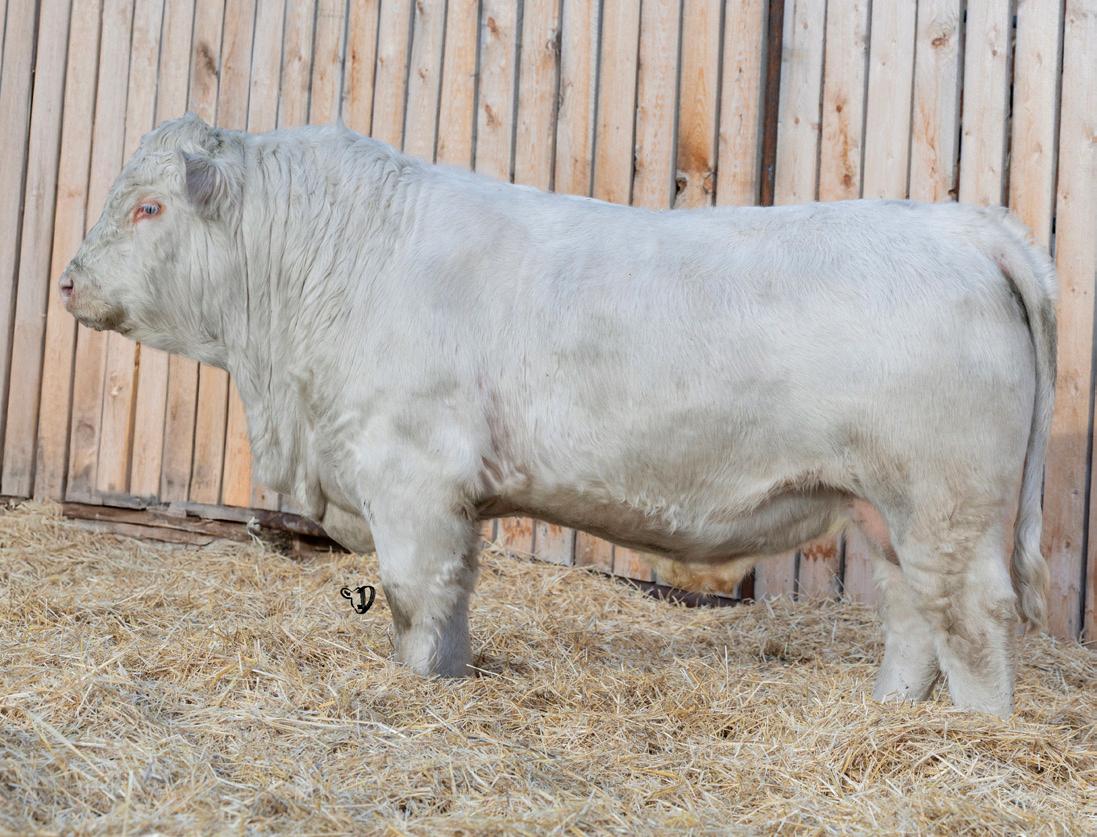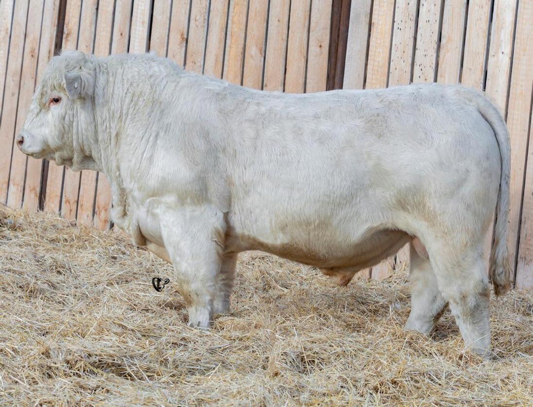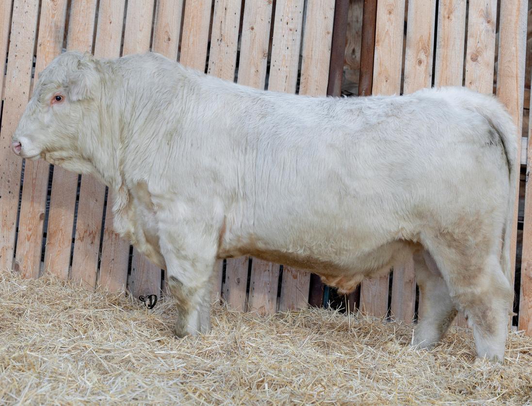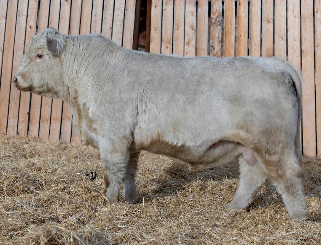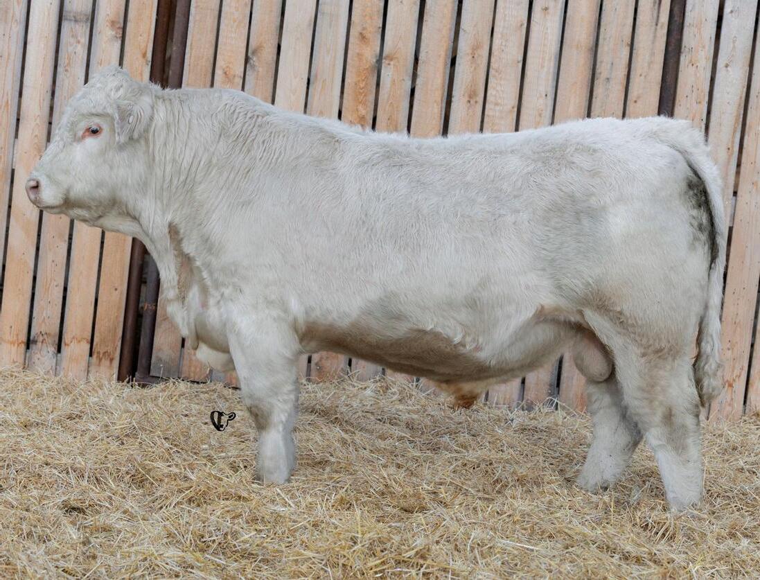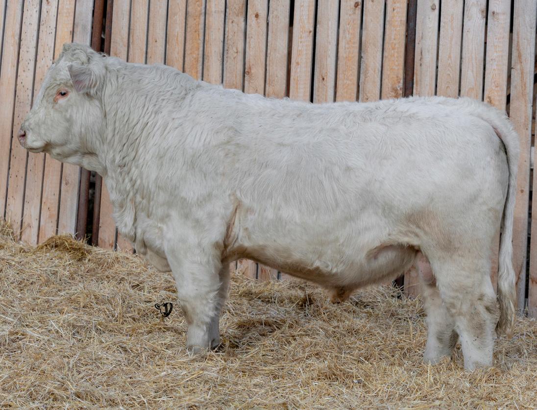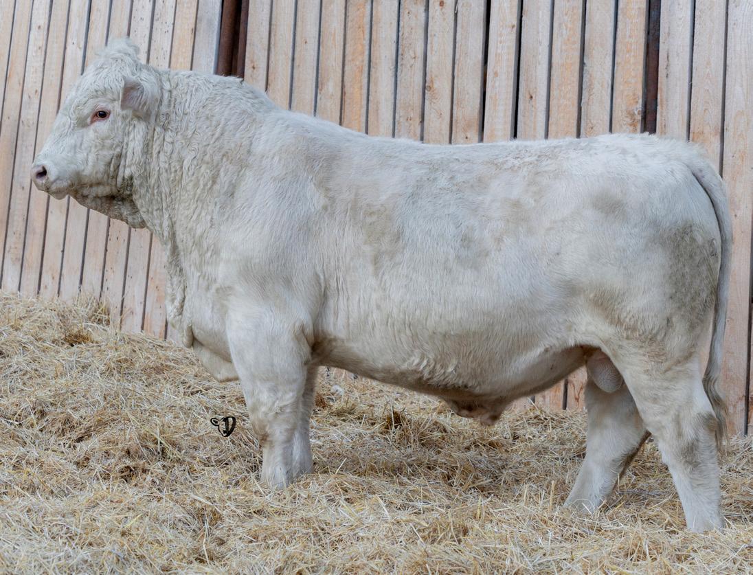 HOMO POLLED. Larger frame and extra length in this performance package. Smooth built front to back so no hang ups come calving time. Great big older momma cow here again, love this type of bull to get the full Charolais performance advantage on my commercial cows.