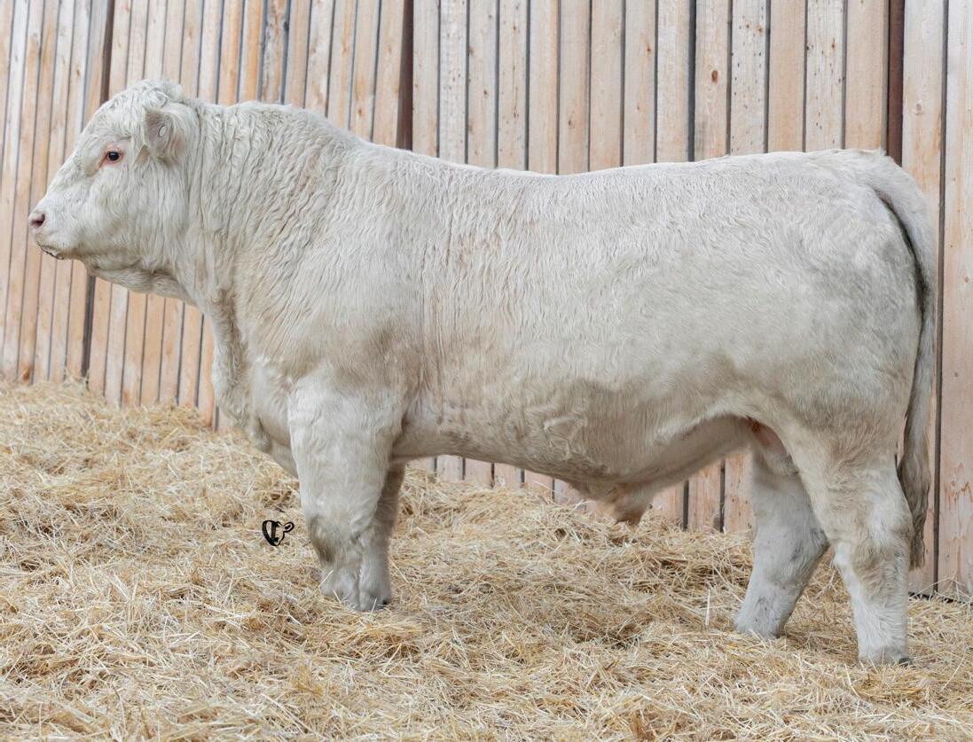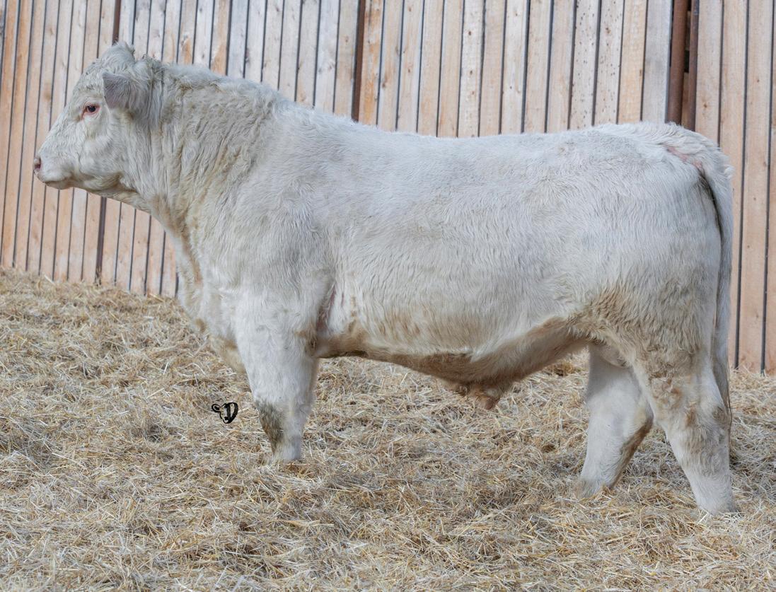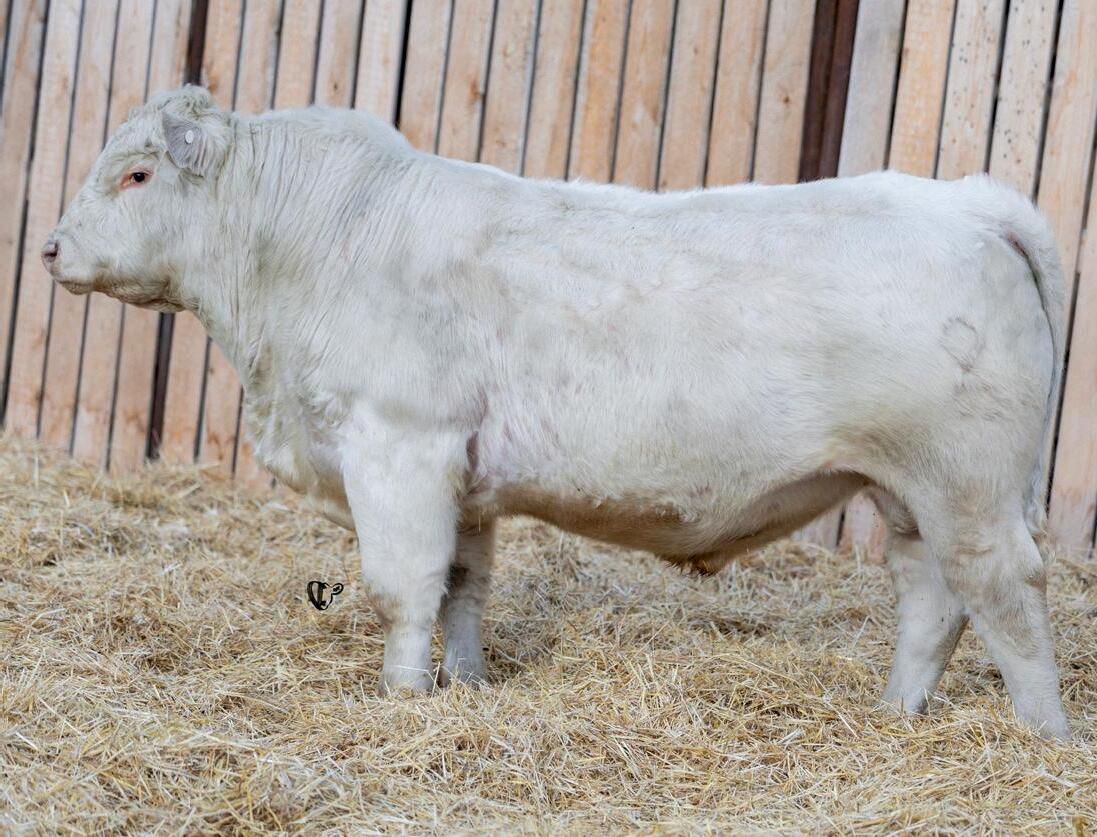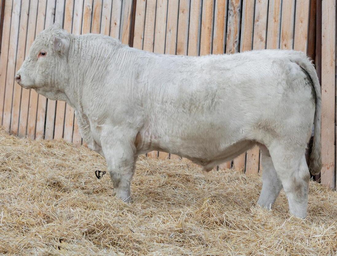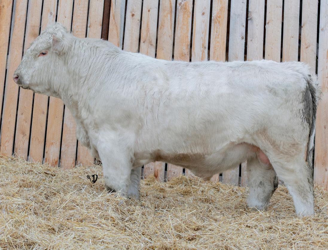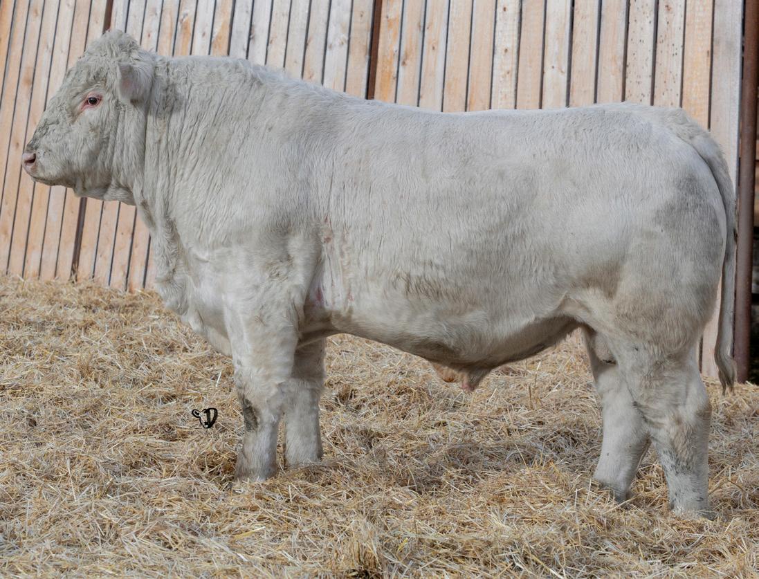 HOMO POLLED. Larger frame and extra length in this performance package. Smooth built front to back so no hang ups come calving time. Great big older momma cow here again, love this type of bull to get the full Charolais performance advantage on my commercial cows.