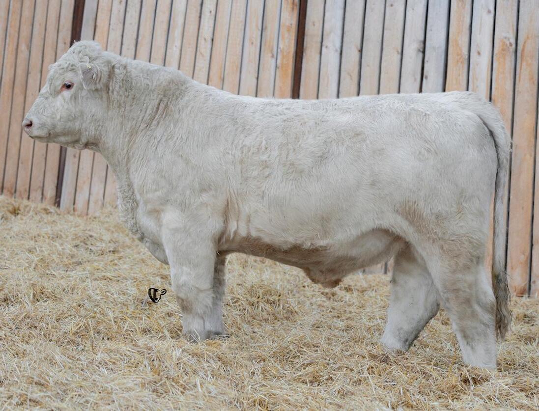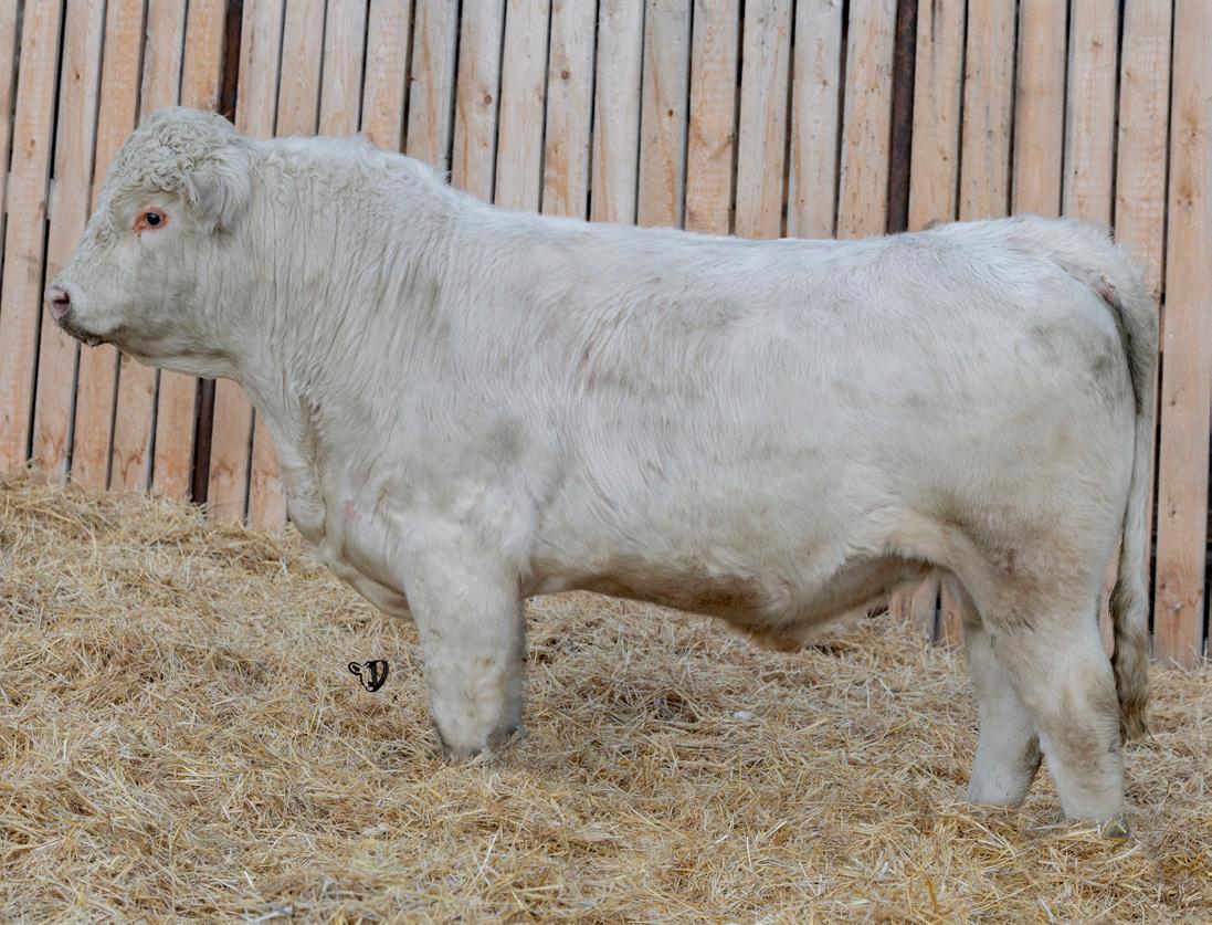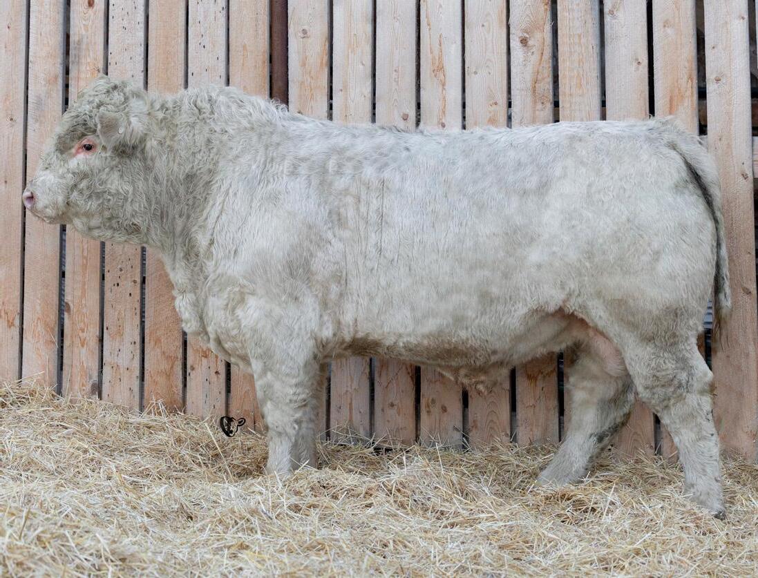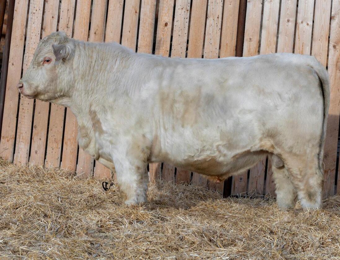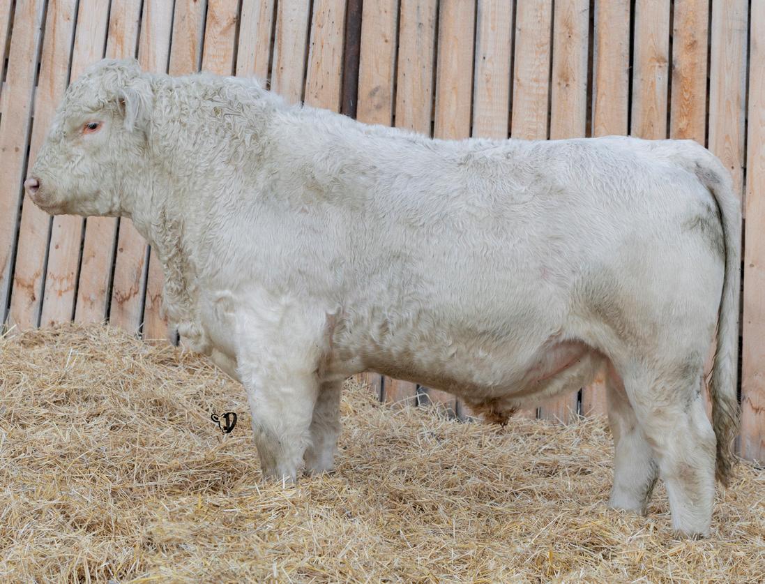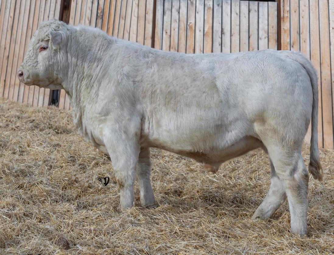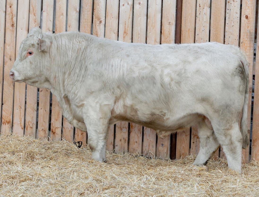 HOMO POLLED. Larger frame and extra length in this performance package. Smooth built front to back so no hang ups come calving time. Great big older momma cow here again, love this type of bull to get the full Charolais performance advantage on my commercial cows.