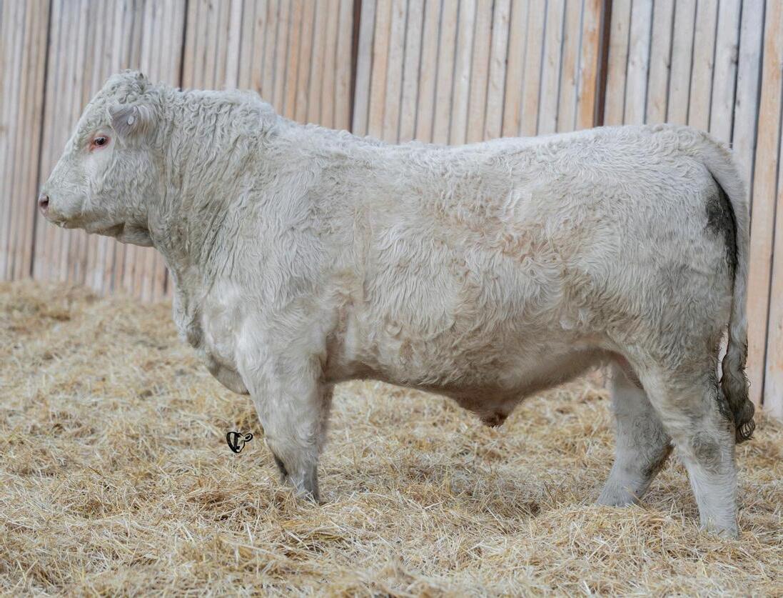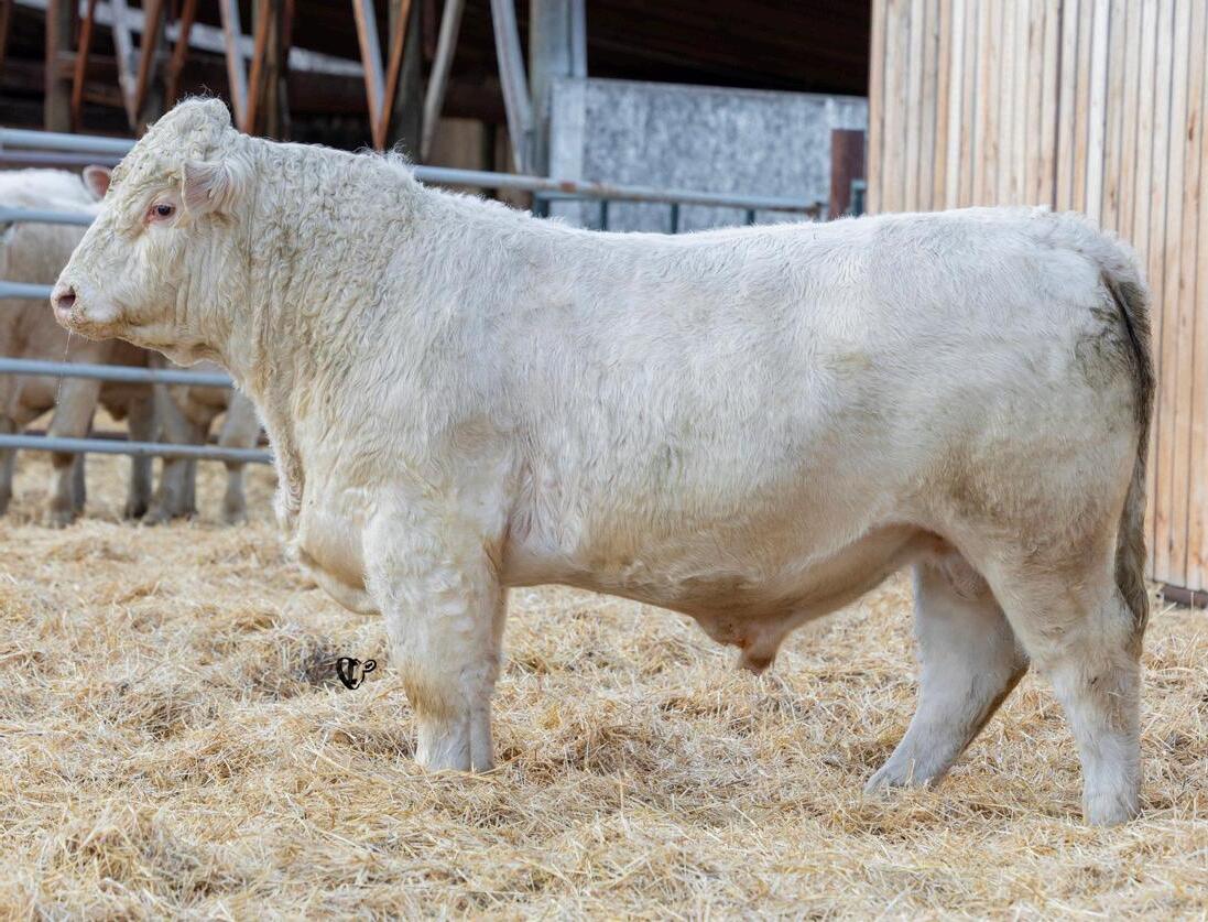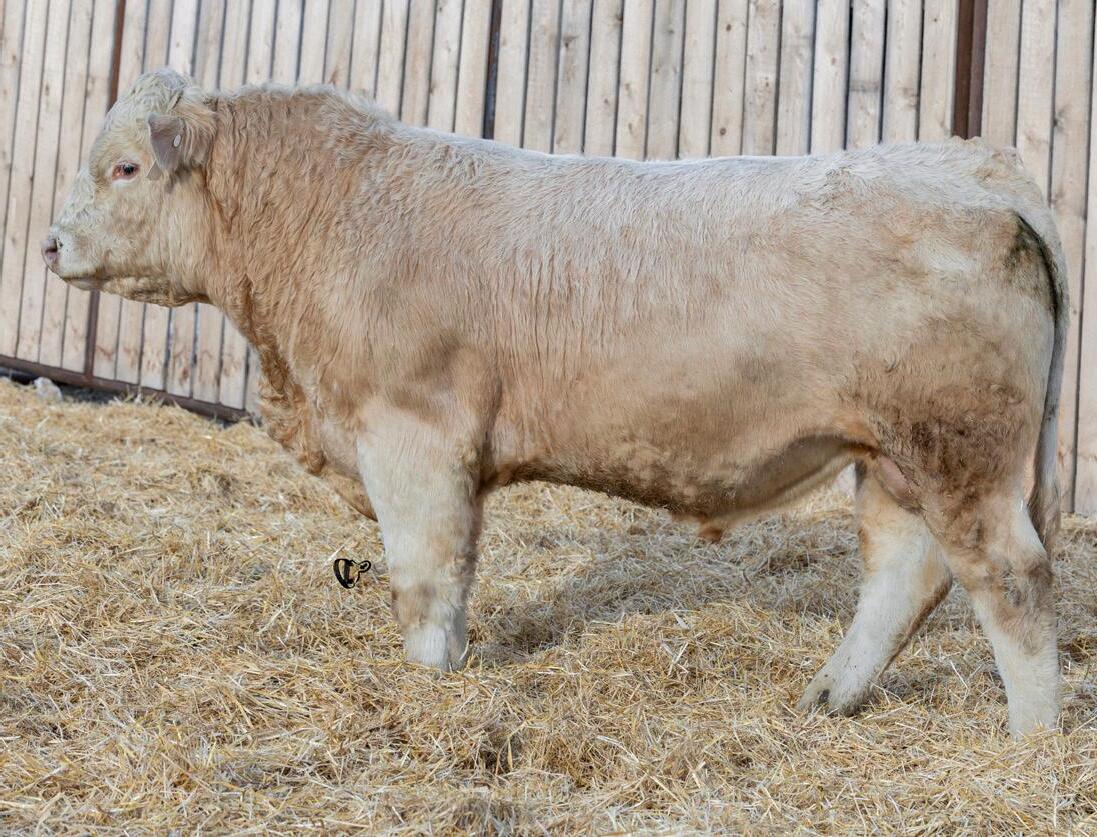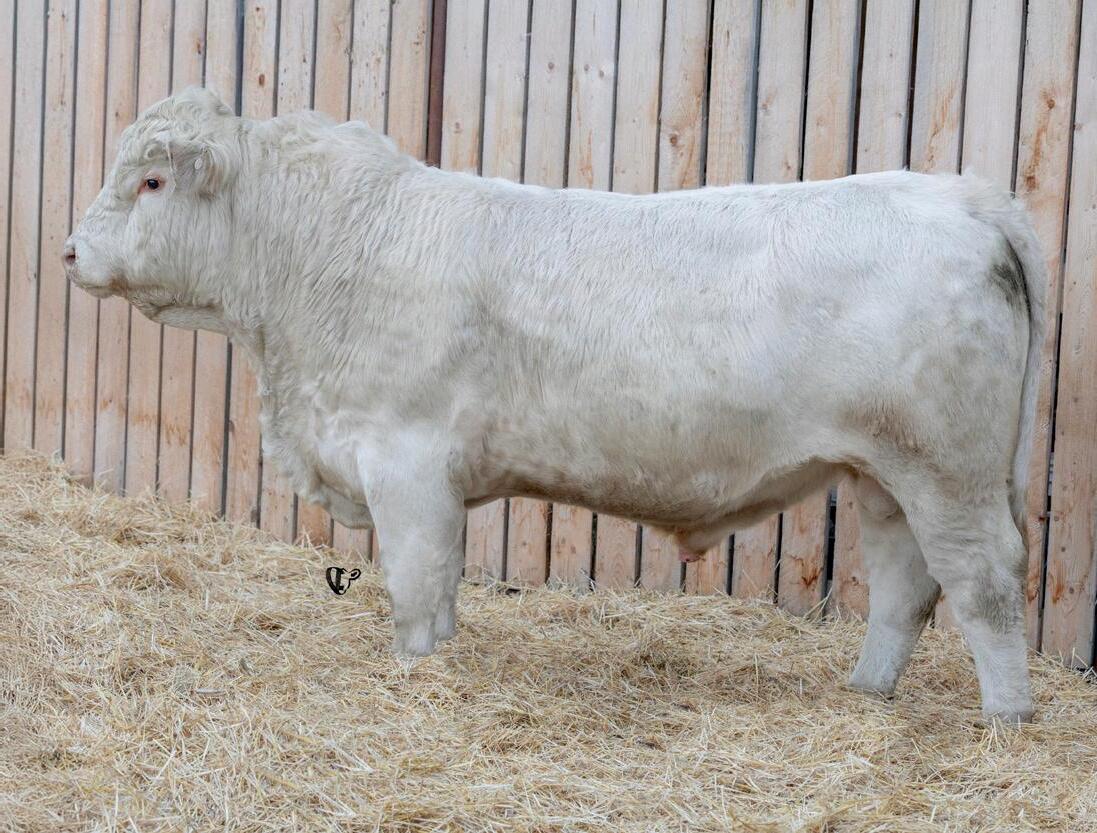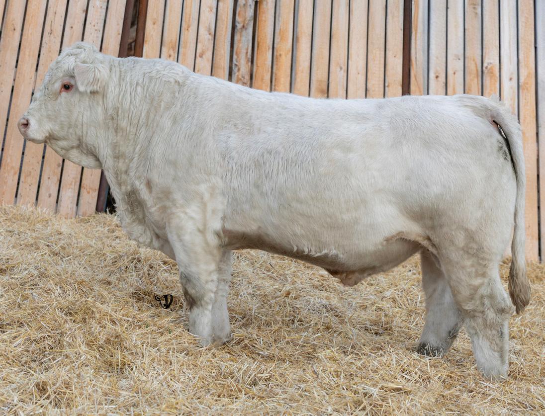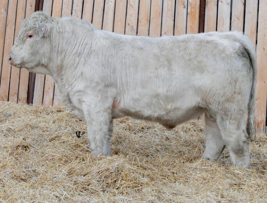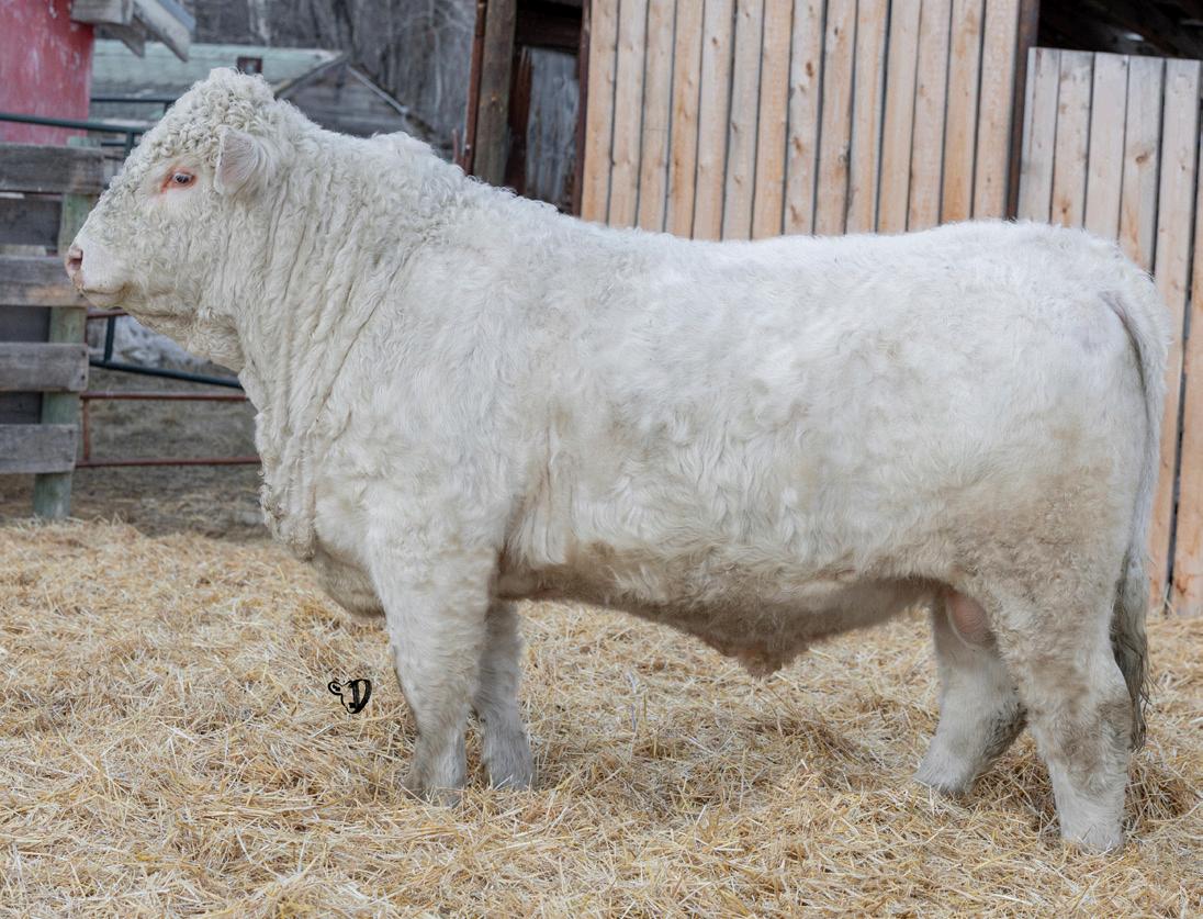 HOMO POLLED. Larger frame and extra length in this performance package. Smooth built front to back so no hang ups come calving time. Great big older momma cow here again, love this type of bull to get the full Charolais performance advantage on my commercial cows.