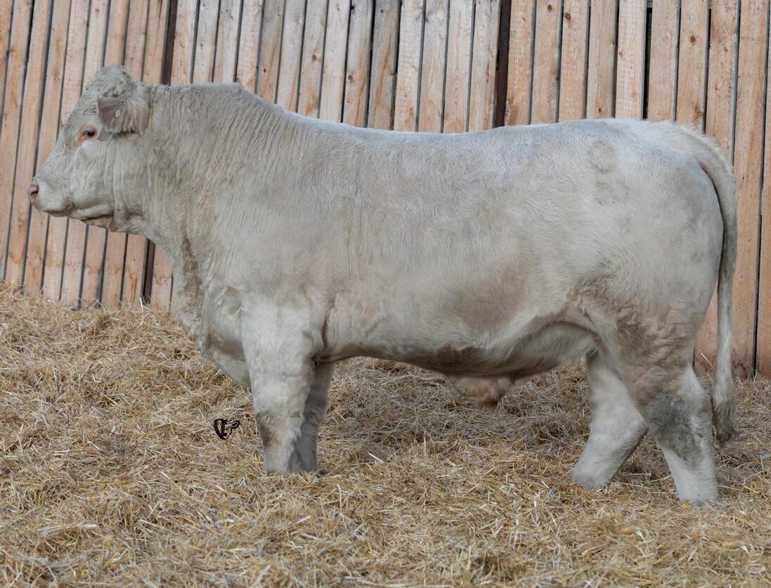 Disposition: We took on a really quiet herd of Jan/Feb calving cows from my parents/Lazy S Charolais in 2020 and rolled them back to April/May calving on the range with our commercial herd here. We weren’t sure how that was going to impact the attitudes of future offspring but we really wanted to preserve the gentle nature and easy handling of the herd. Five years later we continue to turn out easy going stock by culling out the odd bad apple that comes along and trying to make a point of getting some face time with them whenever we can (…which isn’t as often as we would like). Our handling practices and infrastructure generally turned out pretty settled stock even with our commercial herd but I was kind of amazed just how much genetics played a part in the docility of our purebreds. Our bull picture/video day this year was a testament to how easy our bulls are to handle and to the good natured disposition of the group of bulls we have in the sale. Dacie from DLMS/CattleVids who was taking the pictures and has done tens of thousands over the years commented on them being one of the quietest and easy going late born group of twos she’s done.