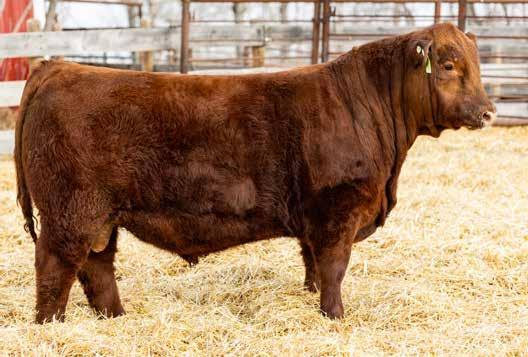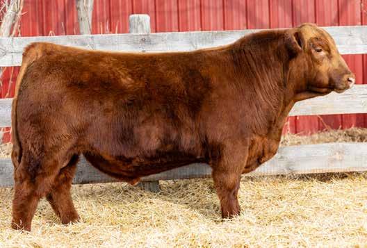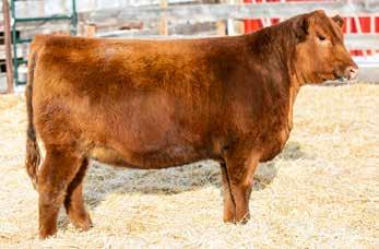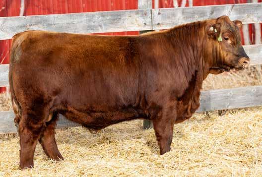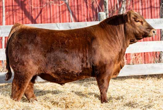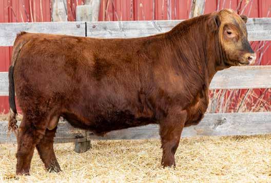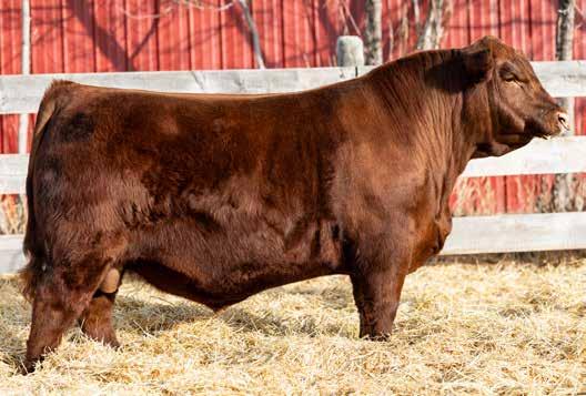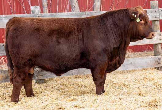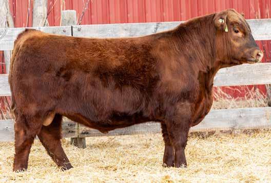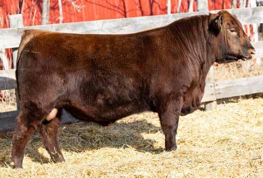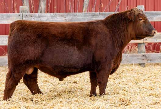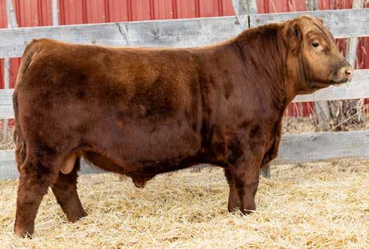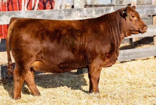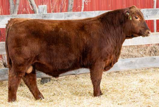 Definitely one of the stoutest, thick bodied, and deep ribbed bulls in the sale this year. Just like the rest of his sire group, 40N has impeccable foot structure. His Maternal Grand Sire achieved multiple championships during the 2019 show season, including Olds Fall Classic, Lloydminster Stockade Roundup and Farmfair International. His red hided Dam has a beautiful udder structure and is out of 2 Black/Red carrier parents, making her and her offspring truly impressive outcross genetics.