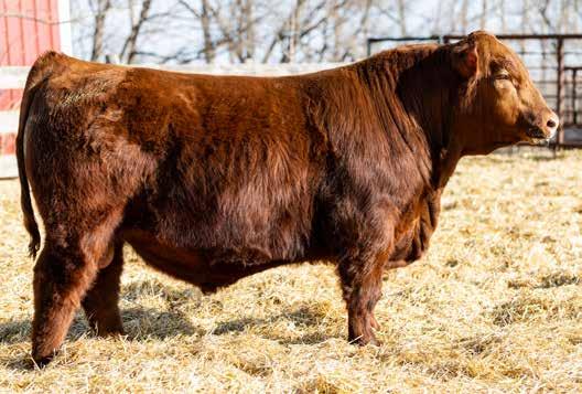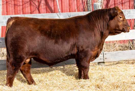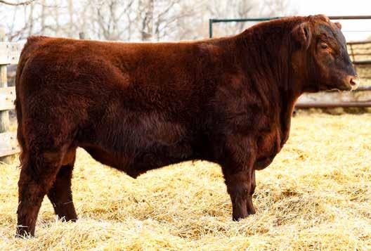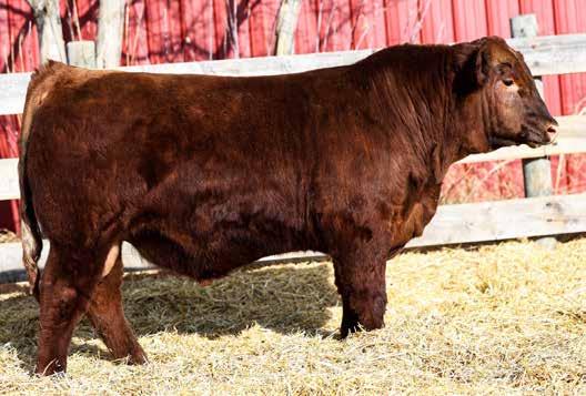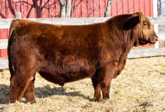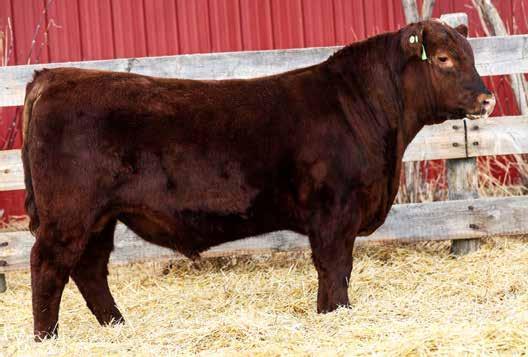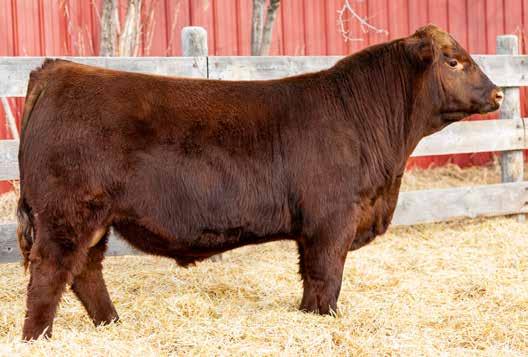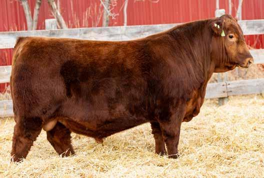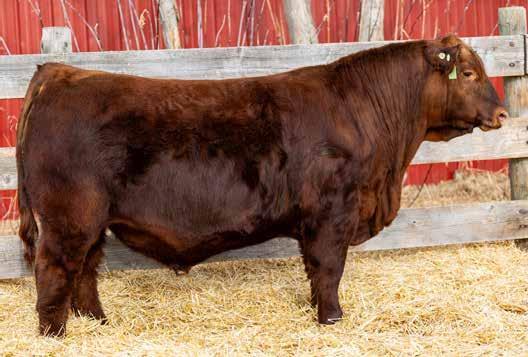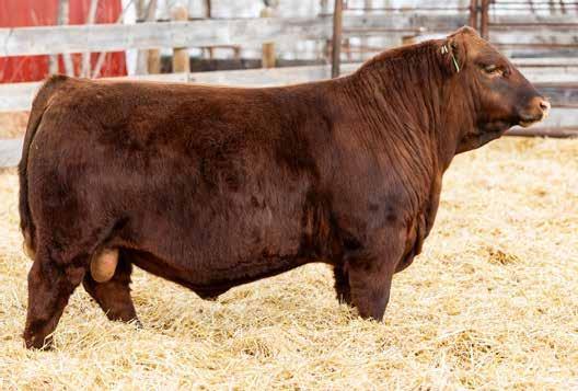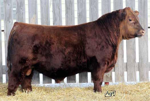 Although this strong framed Refine 78K son has the same powerful genetics as his Sire, he is still equipped with a moderate birth weight and a comfortable degree of calving ease. A solid bull from the ground up, with a strong top line and a dark red hair coat.