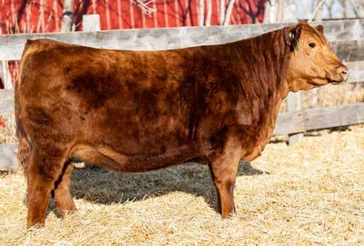This attractively powerful young female is sure to carry on the long lasting, positive traits of both her Dam and Sire. Her sire has provided us with many years of bull & heifer calves that are constantly in the top end of our sale and replacement pens.