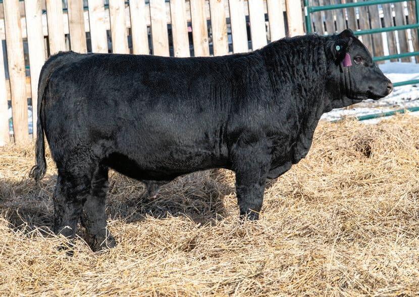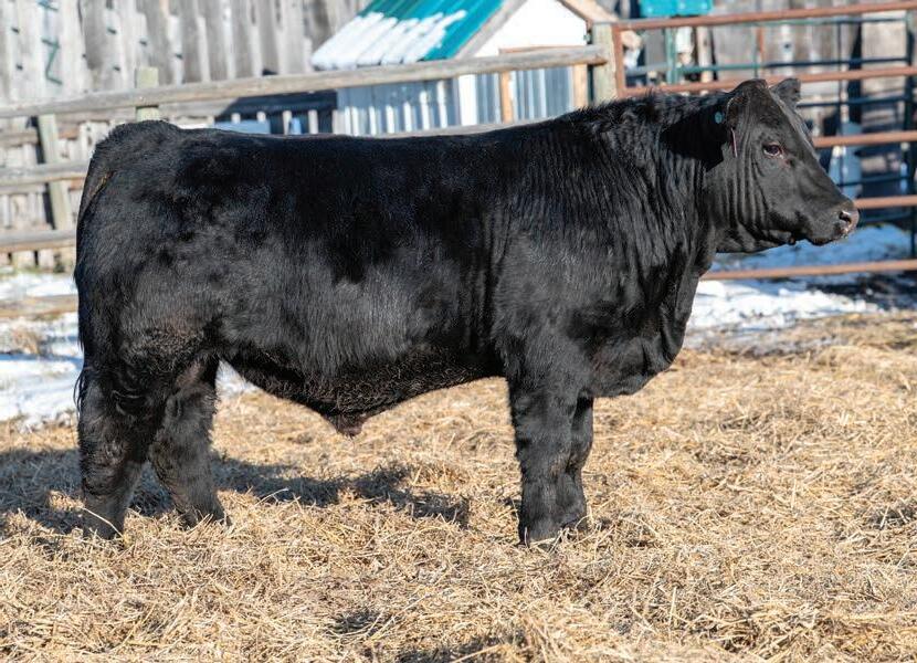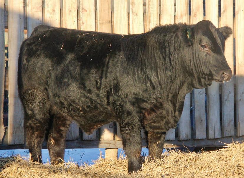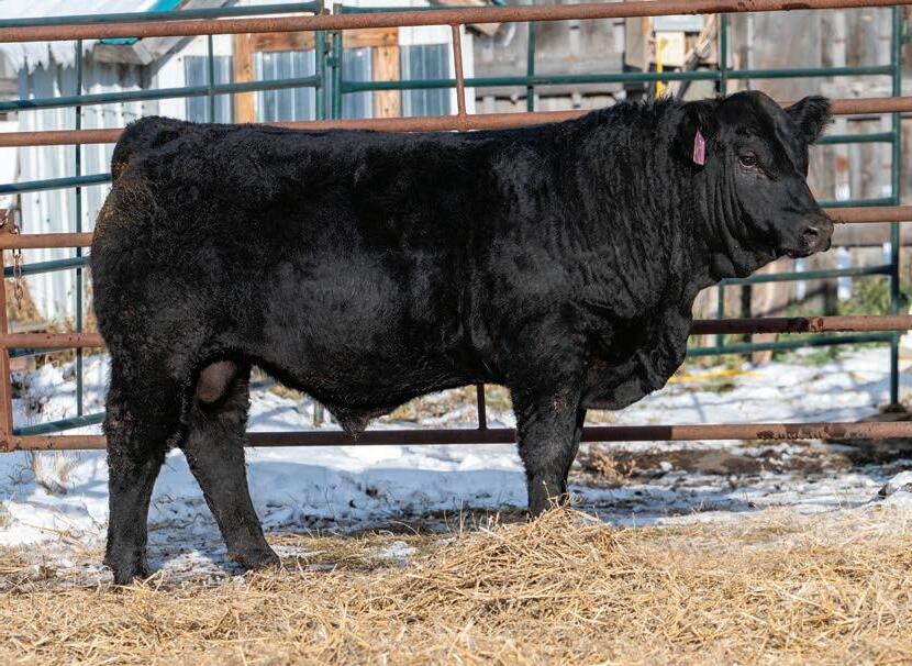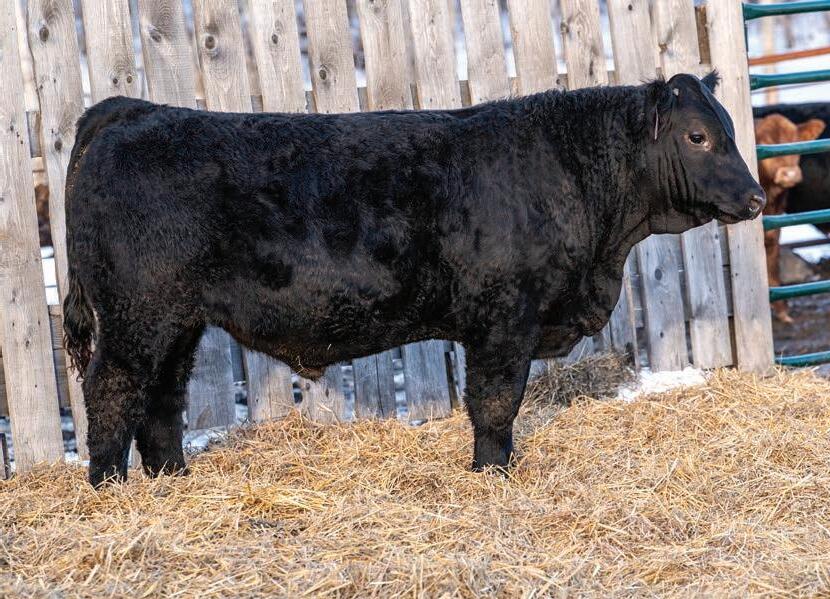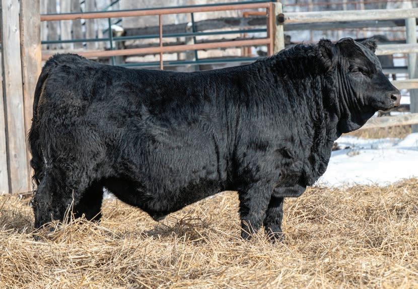 Nolan is the only black baldy bull in our offering. While he is one of the younger bulls he has a lot to offer as he comes from a great cow family with exceptional feet and udders. He has some very notable black Simmental bulls in his genetics including Gold Key, Riddler, Full Throttle and Club King. I would be keeping as many of his daughters as possible.