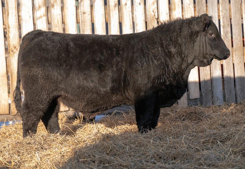Newton is a very quiet bull with lots of hair and moderate birthweight. He carries a lot of meat and muscle on a moderate frame and will produce those easy keeping females that we are all after. His dam had a bull in this sale last year and comes from our highly productive Princess cow family. This guy would work great on a group of second calvers. HOMO POLLED/HOMO BLACK